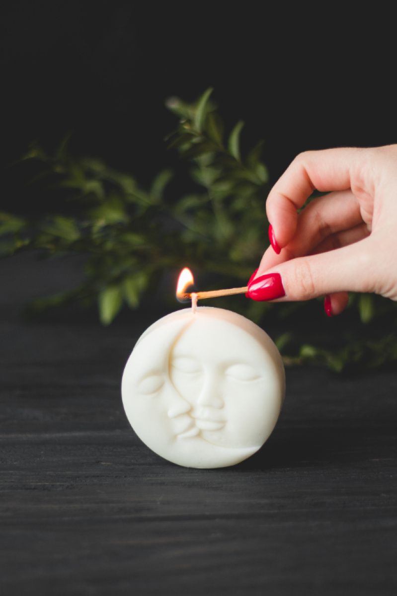 Свеча выполнена собственноручно из экологически чистого растительного воска.