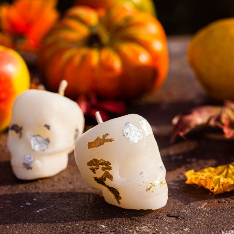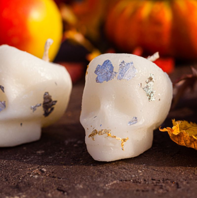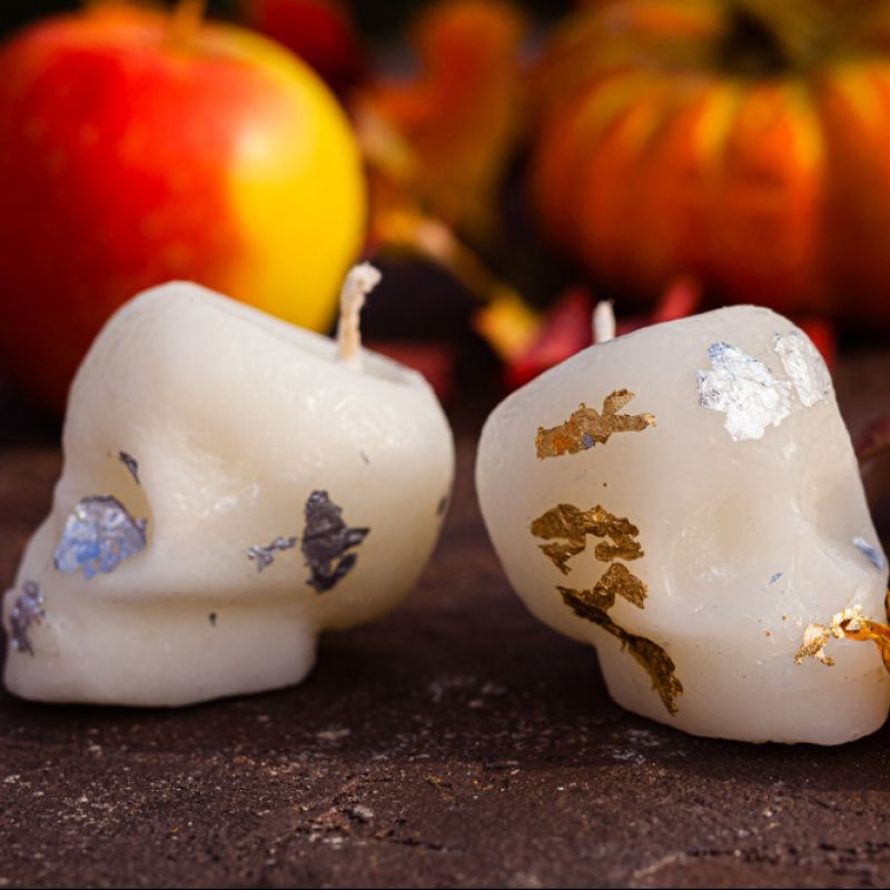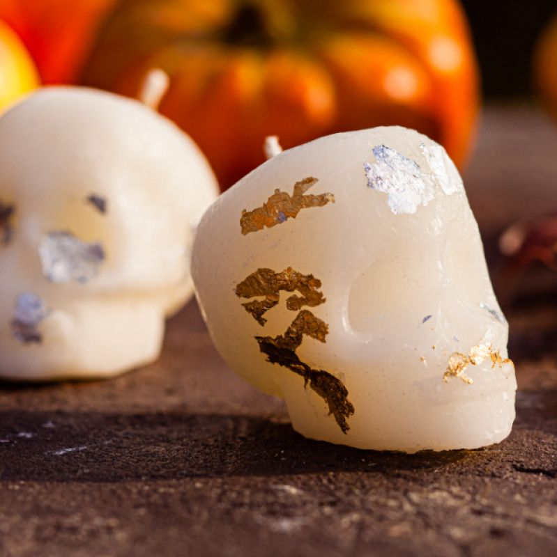 Свеча натуральная, изготовлена из соевого воска. Может быть разного цвета, например черный череп с золотым напылением. Свеча может быть ароматизированная по желанию