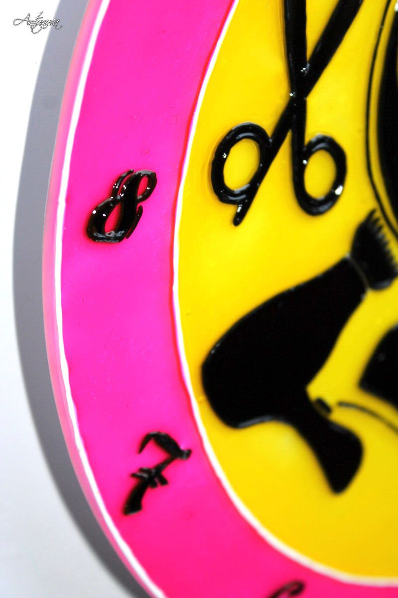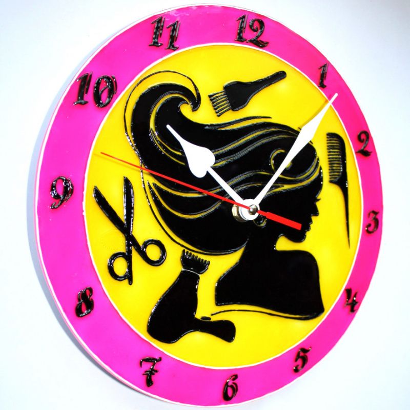 Настенные часы с ручной росписью. Витражная роспись по стеклу профессиональными красками. Бесшумный кварцевый механизм. С обратной стороны -Прочный крепления на стену. Работает от 1 батарейки типа АА
