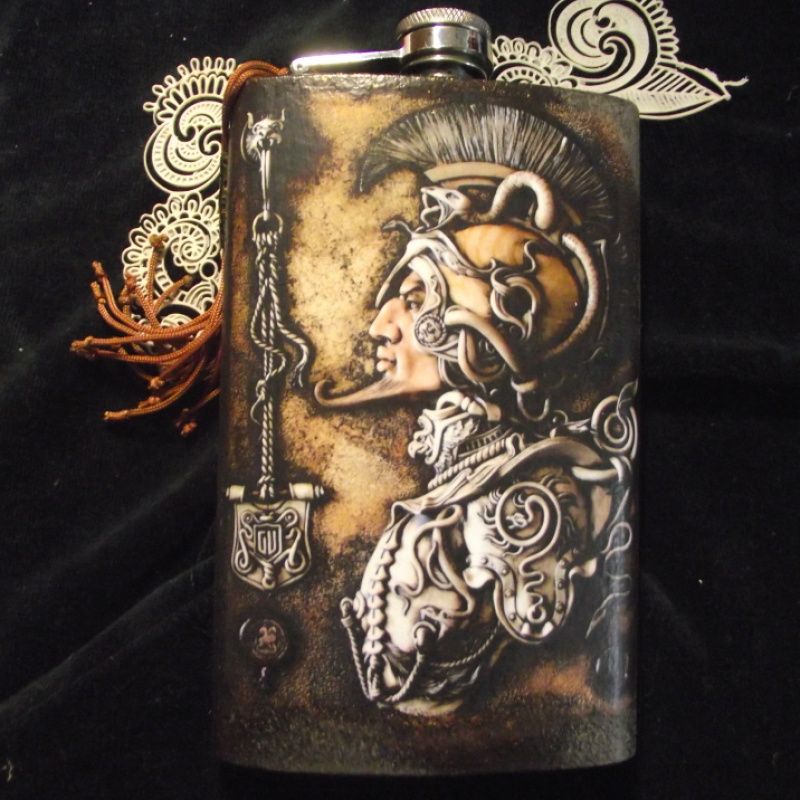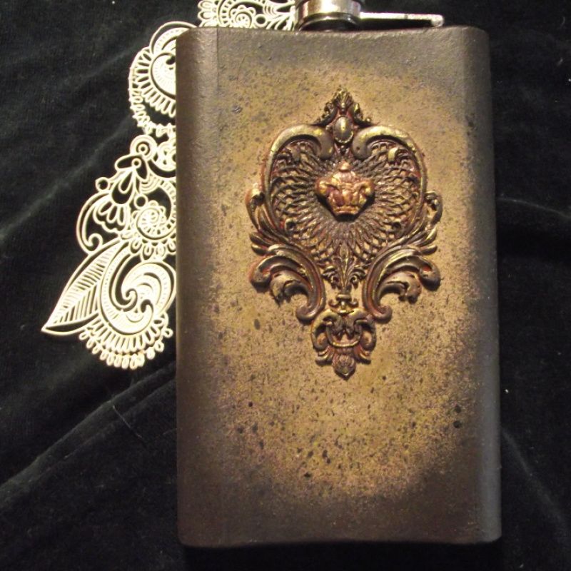 Волшебная фляга из стали, декорирована в технике декупаж. Такой фляге обрадуется каждый и станет оригинальным подарком для знакомых или родных. Размер: 13 х 9 см.