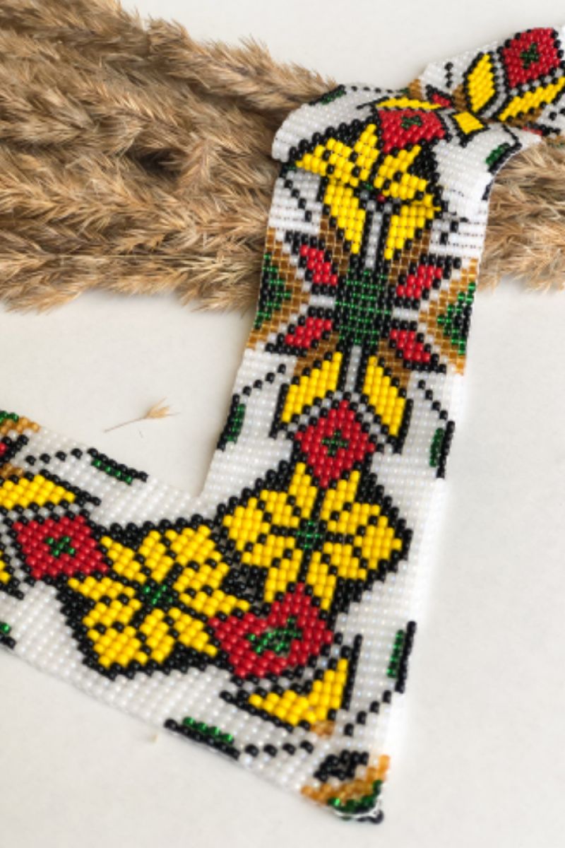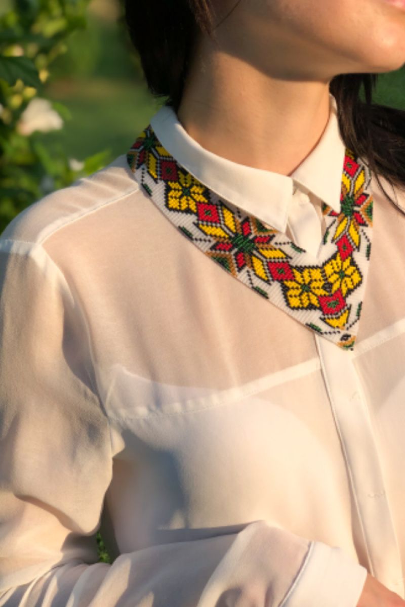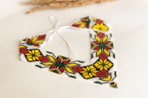 А вы знаете, что гердан является самодостаточной украшением? Его носят под любой одежды, как колье, ожерелье, или воротник. Этот гердан прекрасно подойдет под однотонную рубашку и будет выглядеть как вышивка. Сделан из качественного чешского бисера на прочной нитке! Длина одной стороны к внутреннего угла 20 см Ширина плетенки 4,4 см