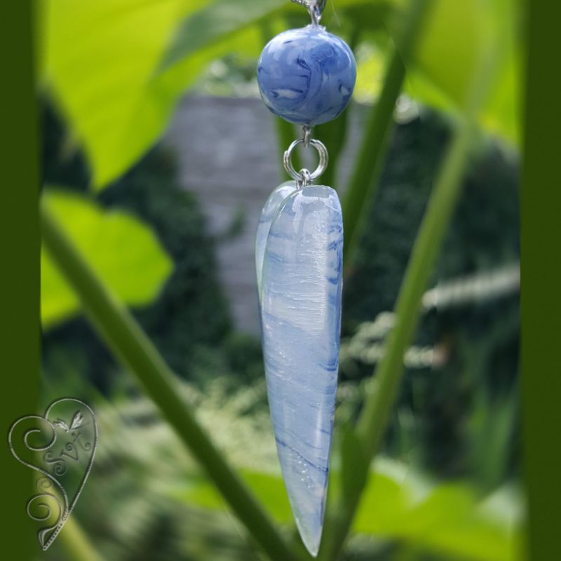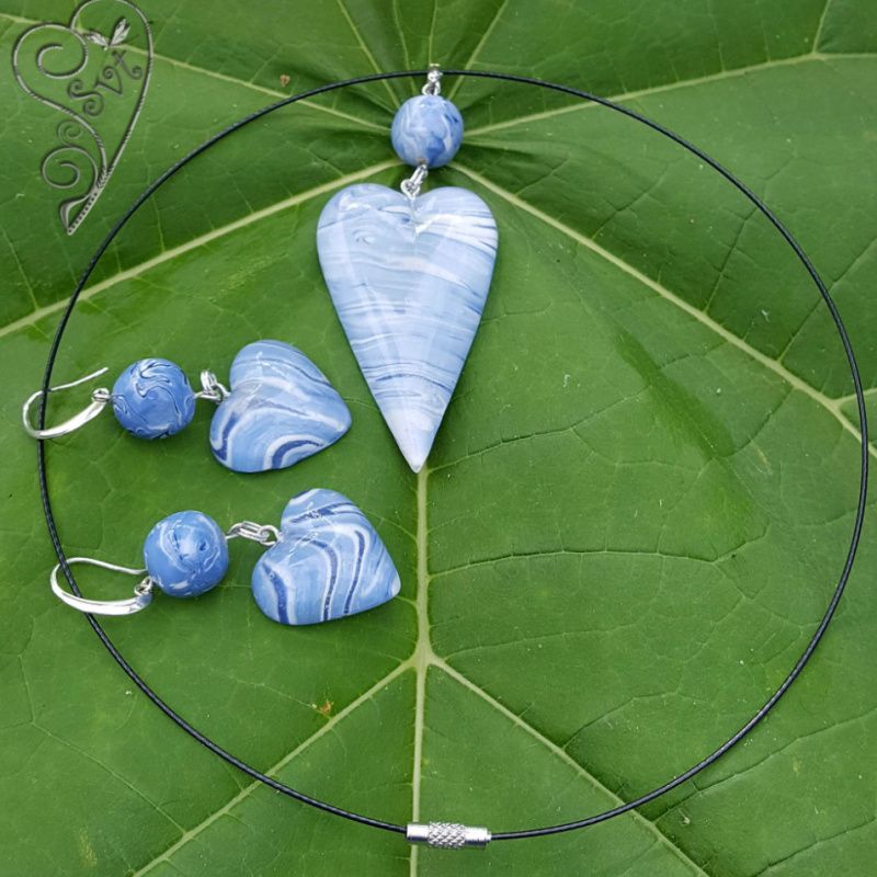 Комплект "Море" выполнен из полимерной глины и залит ювелирной смолой. Смола придает объёмность украшениям, усиливая сходство с водой.