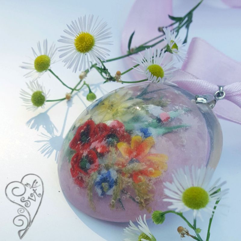 Яркое настроение воплотилось в целом букете летних цветов, каждый лепесток которых сделан вручную. Повторить в точности такое изделие невозможно, поэтому все изделия в единственном экземпляре.