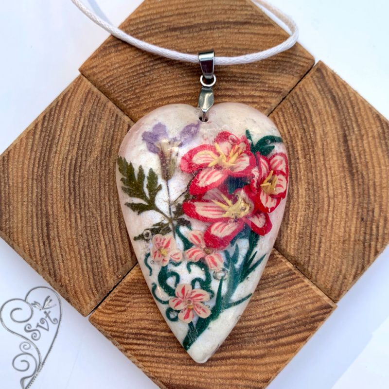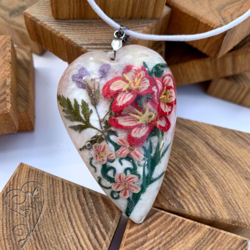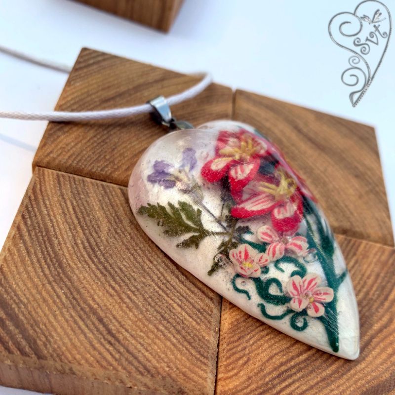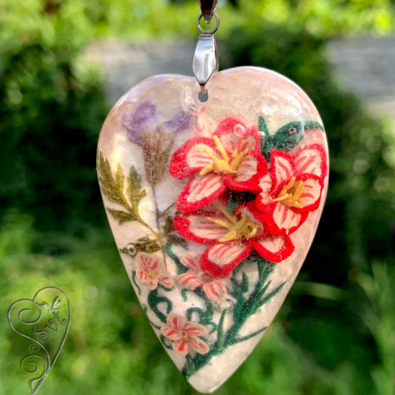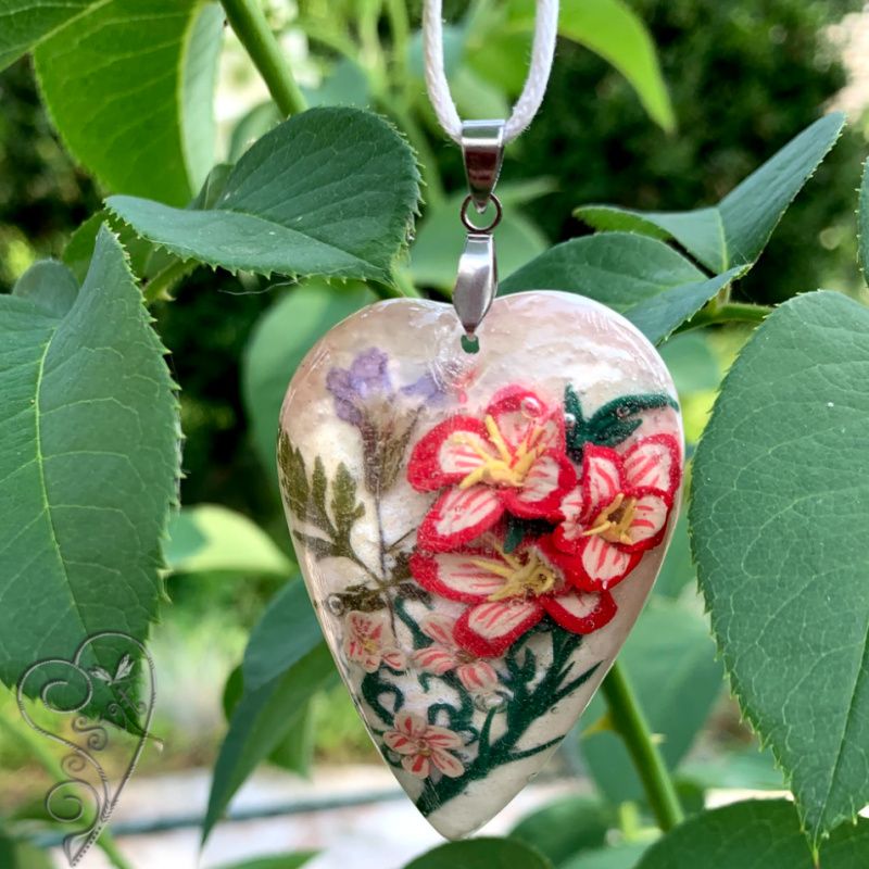 Кулон "Клематис" выполнен из полимерной глины и залит ювелирной смолой. Цветы объёмные, каждый лепесток выполнен вручную. Повторить в точности такое изделие невозможно, поэтому все изделия в единственном экземпляре.