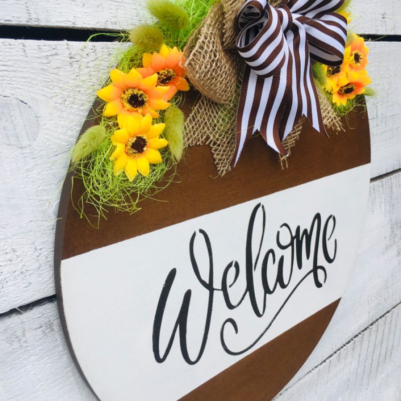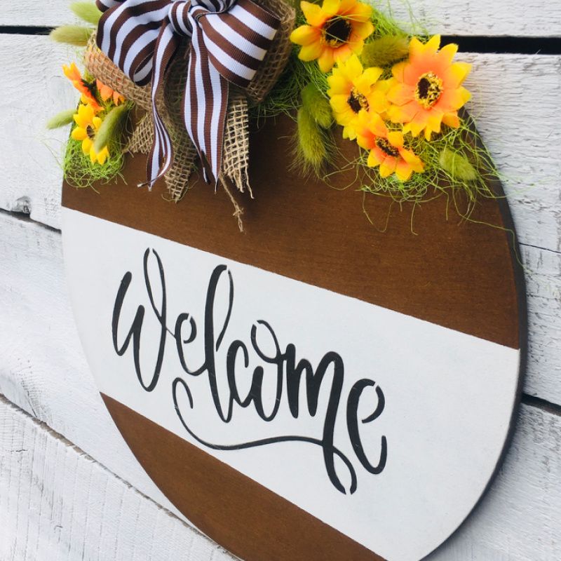 Декор в прихожую на входную дверь. Надпись Welcome. Материал мдф 10мм.