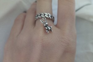 Супер-модная кольцо в виде лануюжка с подвеской Зайкой. Зайка имеет подвижные конечности. Кольцо имеет регулируемый размер. Продается в подарунковиц упаковке. Может быть дополнена серьгами.