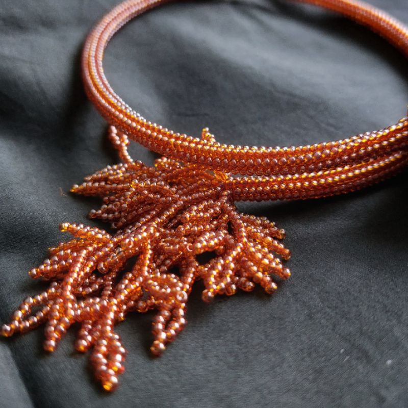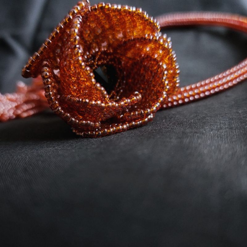 КОЛЬЕ Рудая Принцесса сплетена вручную из качественного чешского бисера. Имеет достаточно жесткое основание, благодаря чему держит форму. Продается в подарочной упаковке.
