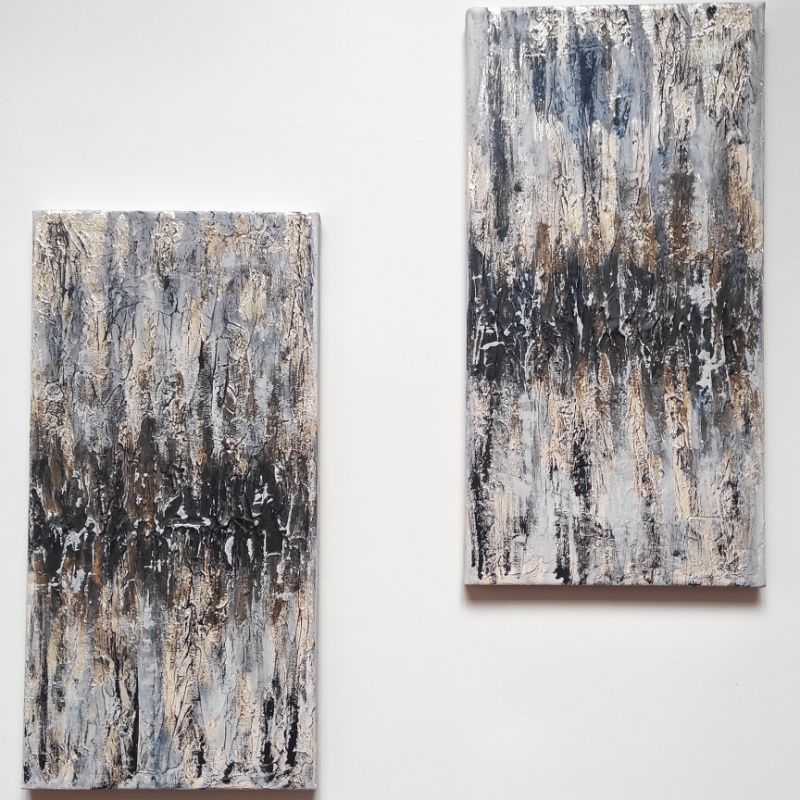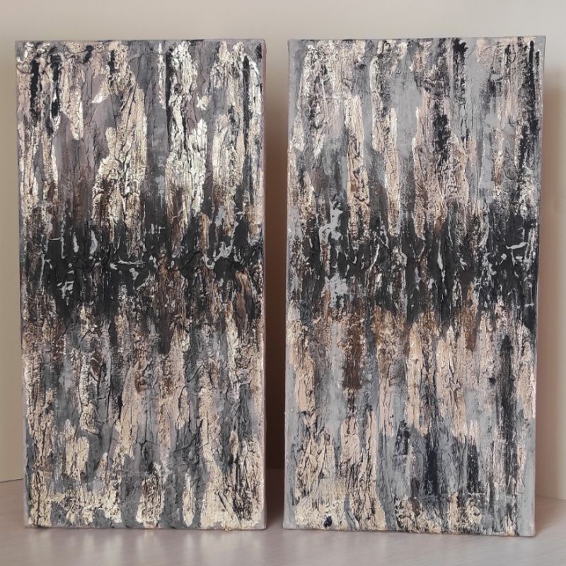 Холст, акрил, текстурная паста, поталь. 20 х 40 см.