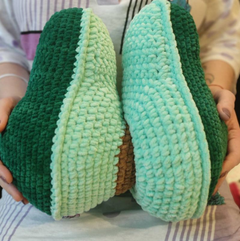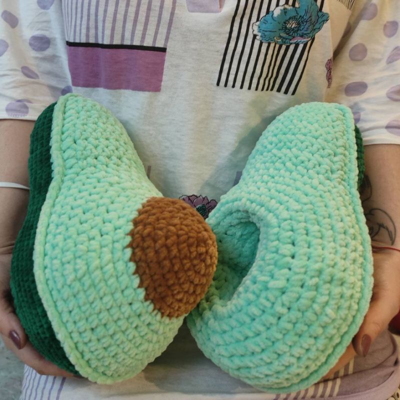 Мягкие плюшевые половинки авокадо. Отличная идея для подарка! Может служить подушкой, игрушкой или оригинальным предметом интерьера. Авторская схема!