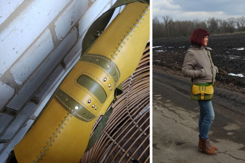 Оригинальная модель изготовлена из кожи краст оливкового и желтого цветов полностью вручную вощеной нитью (кроме подложки). Кожа дополнительно отполирована воском, что придало ей дорогого винтажного вида и защиты от влаги. Кожа гладкая, плотная, шелковистая и тактильные ощущения от нее очень приятные. Сумка имеет довольно приличный размер - 29 * 20 * 5 см, (по крайним границах) и вполне вместительная. Внутри имеет подкладку из плотной ткани. На обратной стороне сумочки есть карман на молнии (молния японская YKK). . Внутри три открытых кармана, Закрывается сумка на Кобурн кнопку, регулируется по трем позициям в зависимости от наполнения сумки. Цвет фурнитуры - никель-антик. Сочетание фурнитуры разных цветов придает сумке более фактурный вид. Ручка сумки регулируется от 110 см до 135 см.