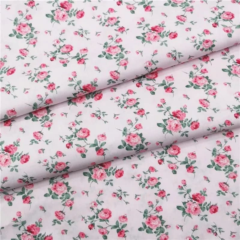 Ткань хлопок для рукоделия розочки на розовом фоне