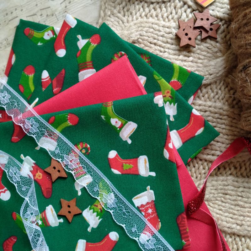 Французская новогодняя хлопок Сапожок на зеленом