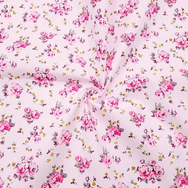 Ткань хлопок для рукоделия розочки на розовом фоне