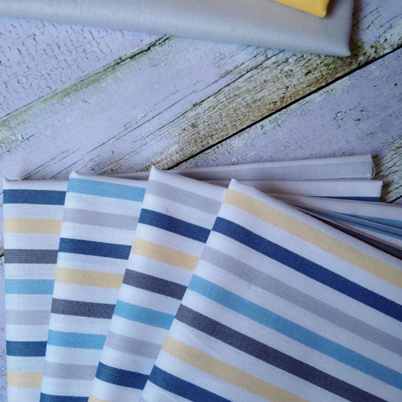 Ткань для рукоделия полоска 5мм серо-желто-голубая