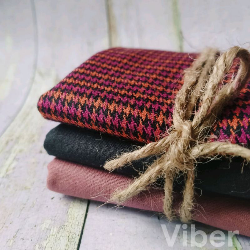 Смешанный набор для рукоделия из 3 шт.- два отреза однотонного хлопка и 1 отрез костюмной мелкой клеточки.
