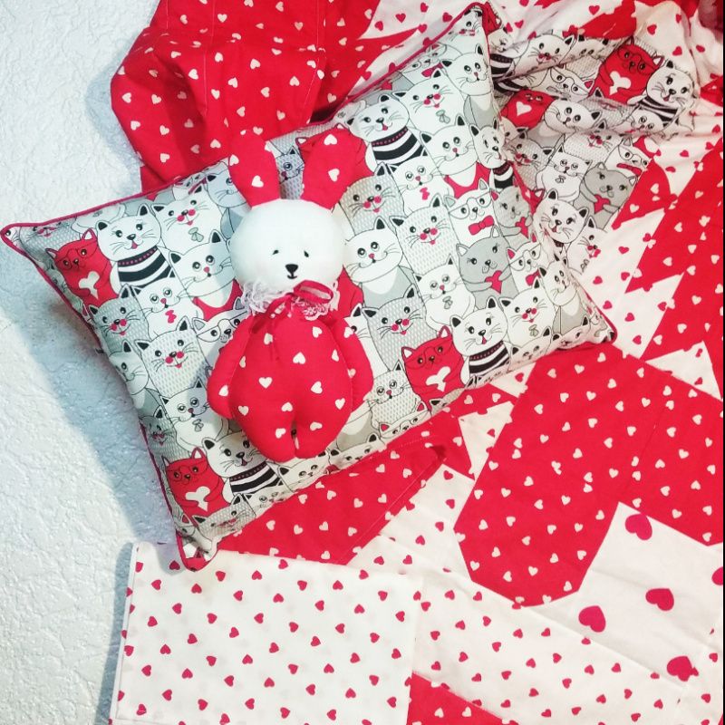 Детский комплект Кitties. В кроватку, в коляску, на выписку малыша, ткань 100% хлопок, наполнитель подушки - гипоаллергенный мягчайший синтепух, плед простеган с наполнителем слимтекс 100, можно использовать как легкое одеяло, красивое покрывало, размеры одеяла 120 см на 130 см, подушка 50 на 35 см, простынь 130 на 110 см. Рекомендуется стирка на деликатных режимах, не более 40 градусов, на минимальных оборотах, одеяло сушить в разложенном виде, не гладить горячим утюгом.