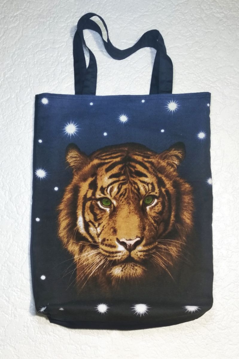 Яркая и вместительная сумка шопер на тему следующего года-года Тигра, сшита из хлопковой рогожки, хлопковой саржи, цифровое нанесение принта, внутренний карман, размер сумки 55 см на 42 см, длина ручек 60 см. стирка на деликатных режимах не выше 40 градусов.