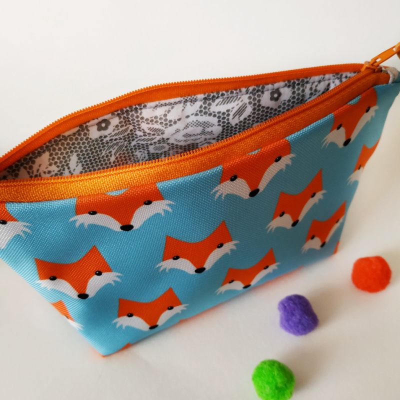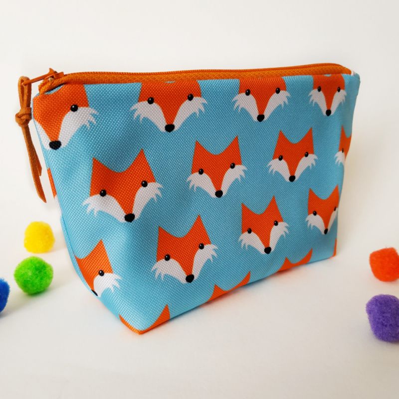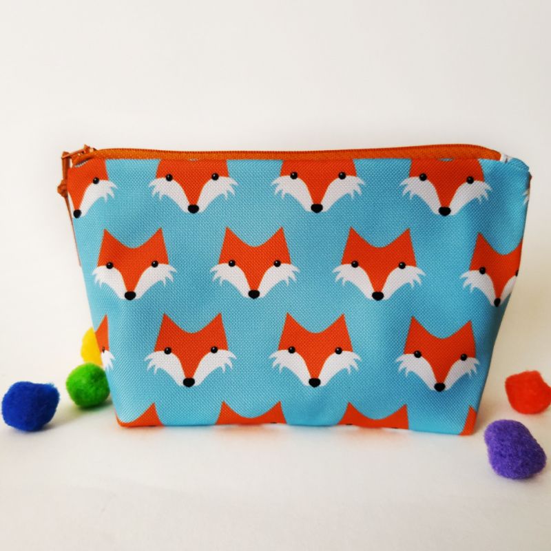 Эта милая косметичка сшита из плотной водоотталкивающей ткани, которая хорошо держит форму. Внутри красочная подкладка из хлопка. Для придания формы между основной тканью и подкладкой вшит слой уплотняющей ткани.