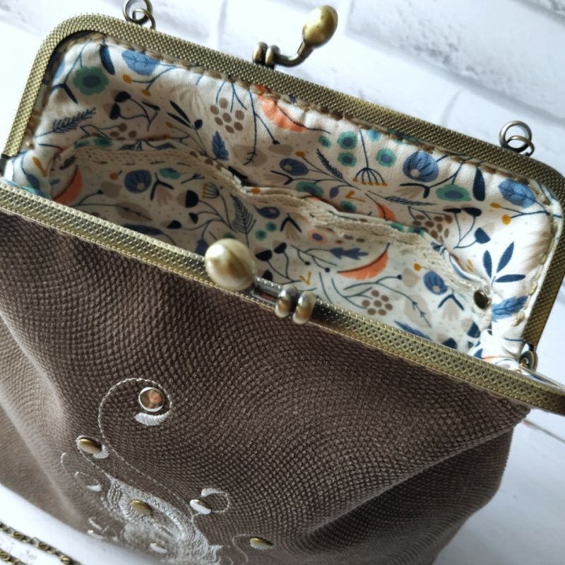 Застежка - металлический фермуар в цвете античная бронза. Сумка легкая и хорошо держит форму.