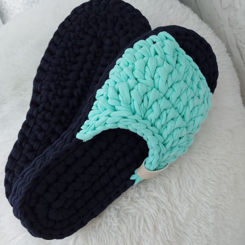 Стильные и удобные домашние тапочки изготовлены из хлопковый трикотажной пряжи. При вязании на заказ учитывается не только длина стопы, но и полнота: узкая ножка, средняя или широкая. Это означает, что в тапочках будет удобно всем. Подошва также вязаная, толщиной 2 см. Если стать в лужу - намокнет, но ходить по мокрому полу совсем безопасно! Стирать можно в машинке, сушить горизонтально. Благодаря тому, что в этих тапочках форуме резиновой подошвы, после стирки 100% ничего не отклеился! Палитра цветов насчитывает около 60 оттенков, обязательно подберем лучший! Такие тапочки будут хорошим подарком девушке: ящко дарите тапочки, вы показываете свое забота о здоровье и комфорт человека. А если эта вещь еще и в любимом цвете - это лучший подарок! Тапочки будет упаковано в удобный мешочек-пыльник, в котором можно хранить обувь, а также подарить его. Цена для любого размера одинакова.