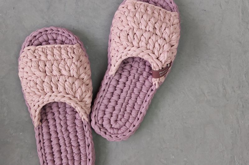 Стильные и удобные домашние тапочки изготовлены из хлопковый трикотажной пряжи. При вязании на заказ учитывается не только длина стопы, но и полнота: узкая ножка, средняя или широкая. Это означает, что в тапочках будет удобно всем. Подошва также вязаная, толщиной 2 см. Если стать в лужу - намокнет, но ходить по мокрому полу совсем безопасно! Стирать можно в машинке, сушить горизонтально. Благодаря тому, что в этих тапочках форуме резиновой подошвы, после стирки 100% ничего не отклеился! Палитра цветов насчитывает около 60 оттенков, обязательно подберем лучший! Такие тапочки будут хорошим подарком девушке: ящко дарите тапочки, вы показываете свое забота о здоровье и комфорт человека. А если эта вещь еще и в любимом цвете - это лучший подарок! Тапочки будет упаковано в удобный мешочек-пыльник, в котором можно хранить обувь, а также подарить его. Цена для любого размера одинакова.