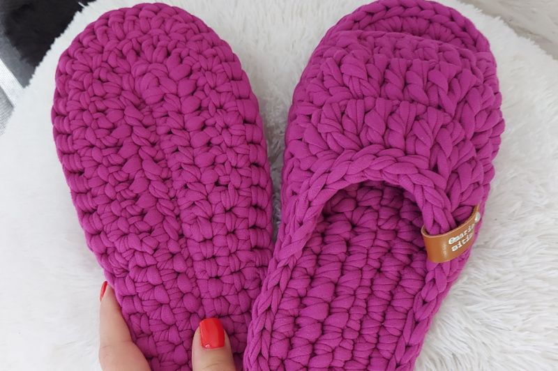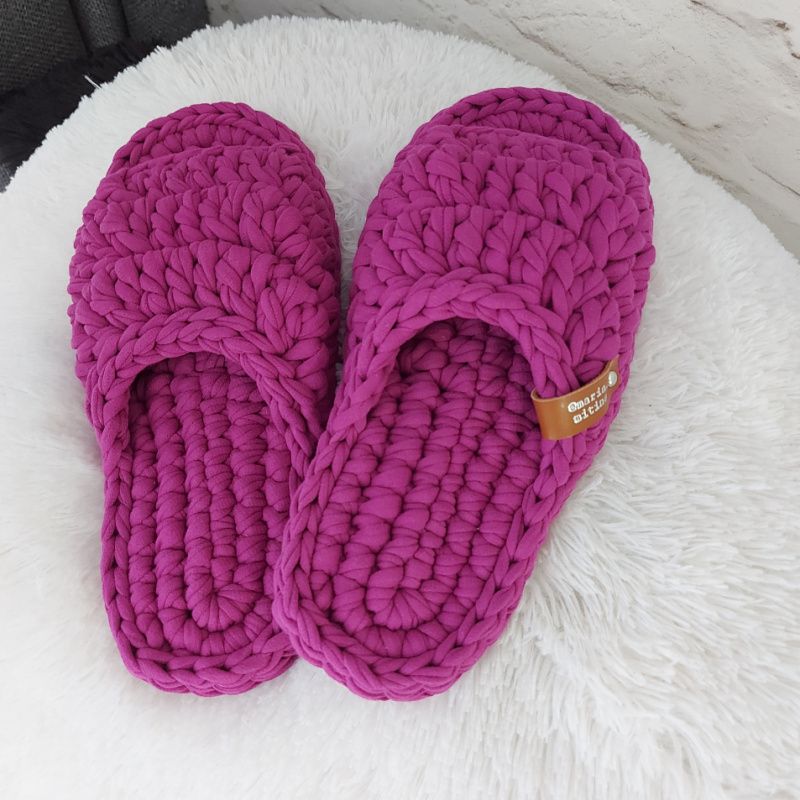 Стильные и удобные домашние тапочки изготовлены из хлопковый трикотажной пряжи. При вязании на заказ учитывается не только длина стопы, но и полнота: узкая ножка, средняя или широкая. Это означает, что в тапочках будет удобно всем. Подошва также вязаная, толщиной 2 см. Если стать в лужу - намокнет, но ходить по мокрому полу совсем безопасно! Стирать можно в машинке, сушить горизонтально. Благодаря тому, что в этих тапочках форуме резиновой подошвы, после стирки 100% ничего не отклеился! Палитра цветов насчитывает около 60 оттенков, обязательно подберем лучший! Такие тапочки будут хорошим подарком девушке: ящко дарите тапочки, вы показываете свое забота о здоровье и комфорт человека. А если эта вещь еще и в любимом цвете - это лучший подарок! Тапочки будет упаковано в удобный мешочек-пыльник, в котором можно хранить обувь, а также подарить его. Цена для любого размера одинакова.