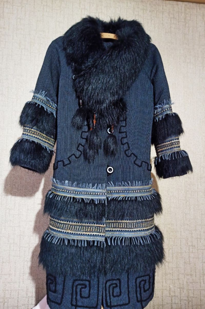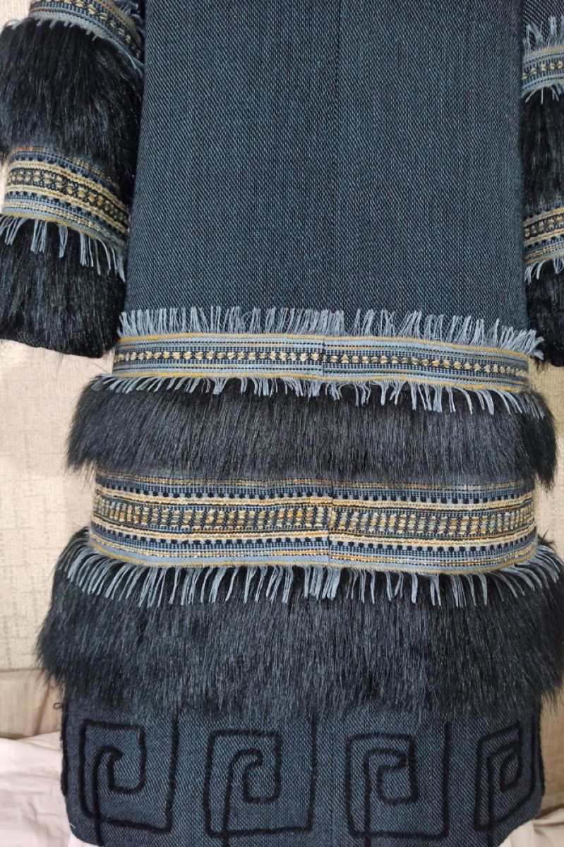 Пальто выполнено полностью своими руками (ткань соткана на ткацком станке, сшито и декорировано). Это авторская работа, которая была на многих международных выставках. Верхний текстиль соткан на ткацком станке из темно-синей и черной шерсти. Декорирован ткаными элементами, искусственным мехом, шнуром и элементами дерева. В нем тепло и уютно. Подчеркивает вашу элегантность, женственность и утонченный вкус. Размер М (международный), 44 (Украина)