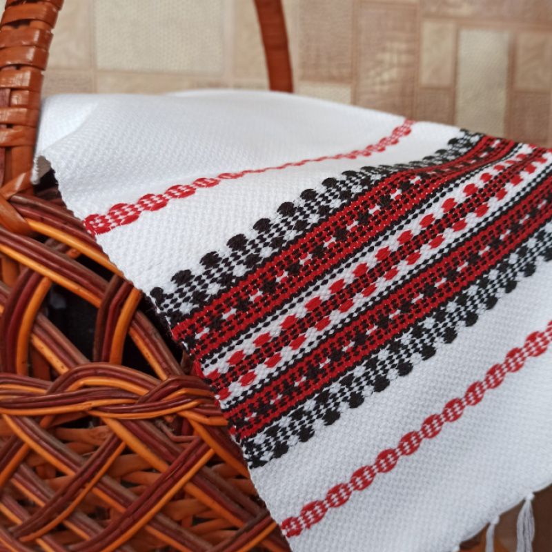 Домотканая салфетка выполнена на ткацком станке из натуральных материалов хлопка и шерсти.