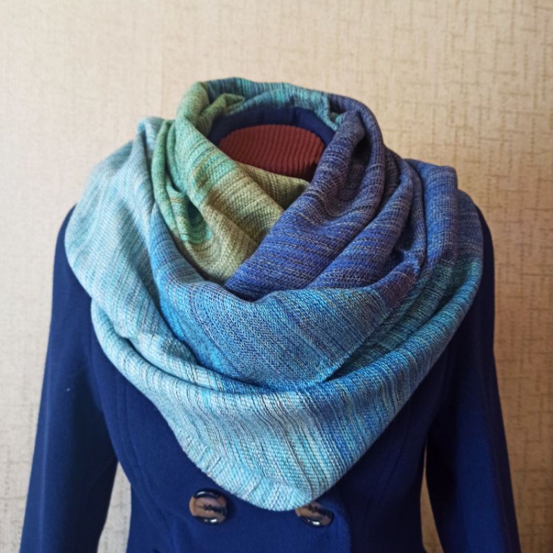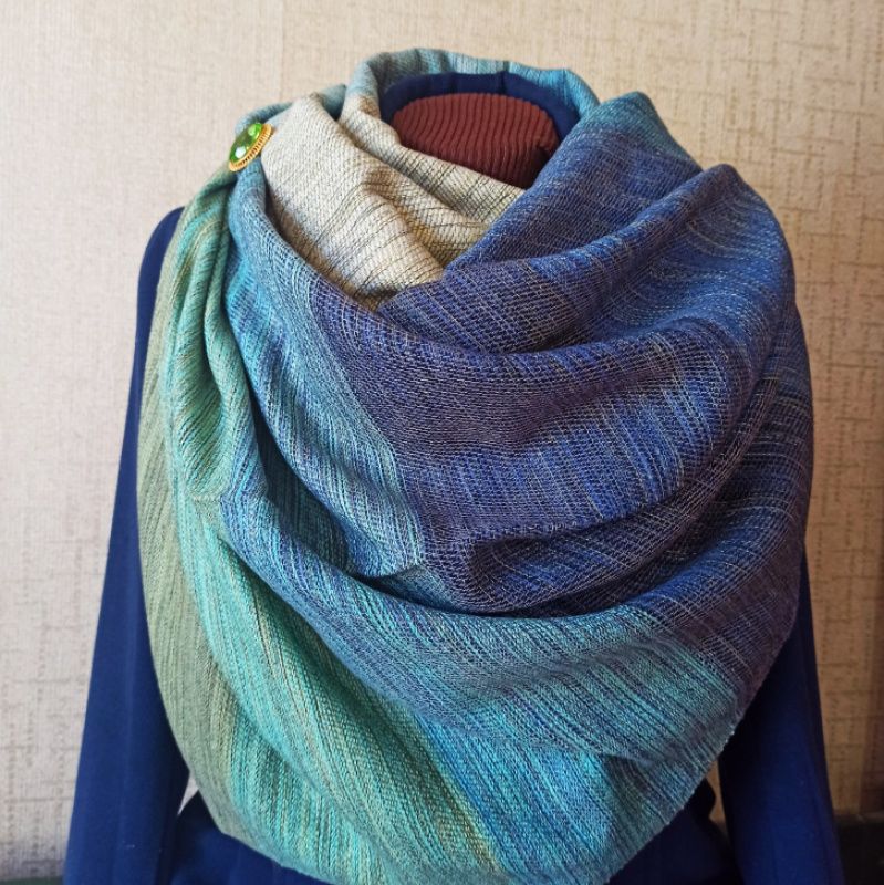 Шарф виконаний на ткацькому верстаті з натуральних матеріалів (бавовни, вовни, напіввовни та віскози).Багатобарвні кольори, які плавно перетікають один в одного. Приємний та ніжний на дотик, він зігріє Вас у будь-яку пору року…