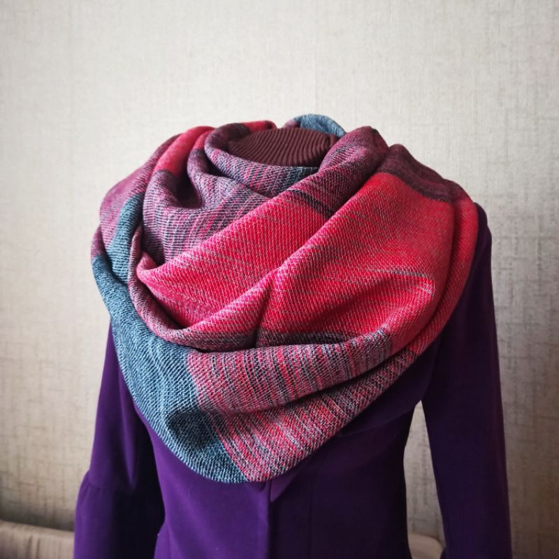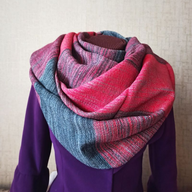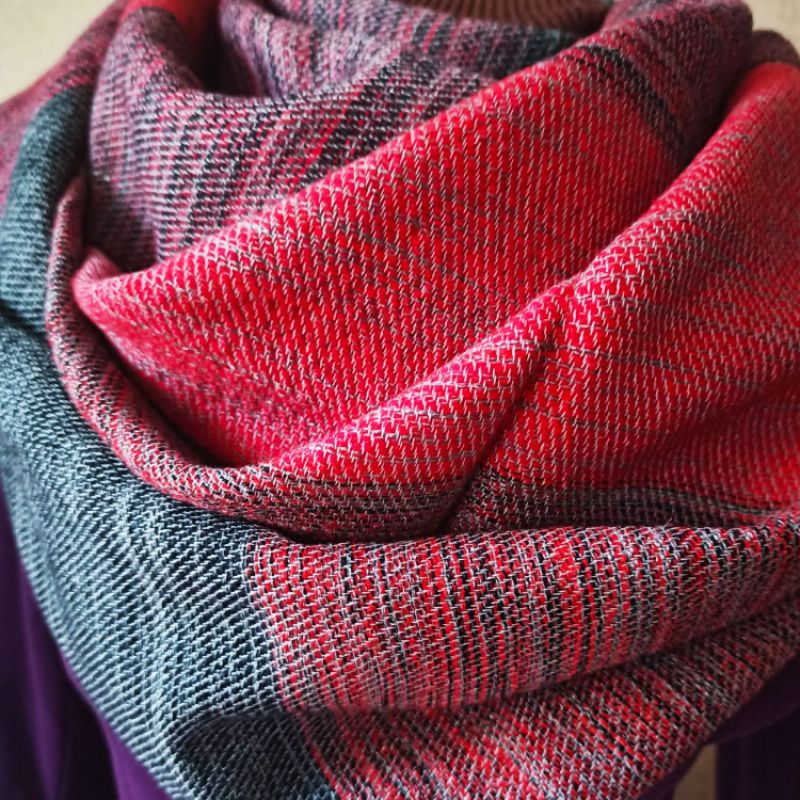 Поєднання червоного,сірого та чорного кольорів, які плавно перетікають один в одного створюючи градієнт. Приємний та ніжний на дотик, він зігріє Вас у будь-яку пору року…