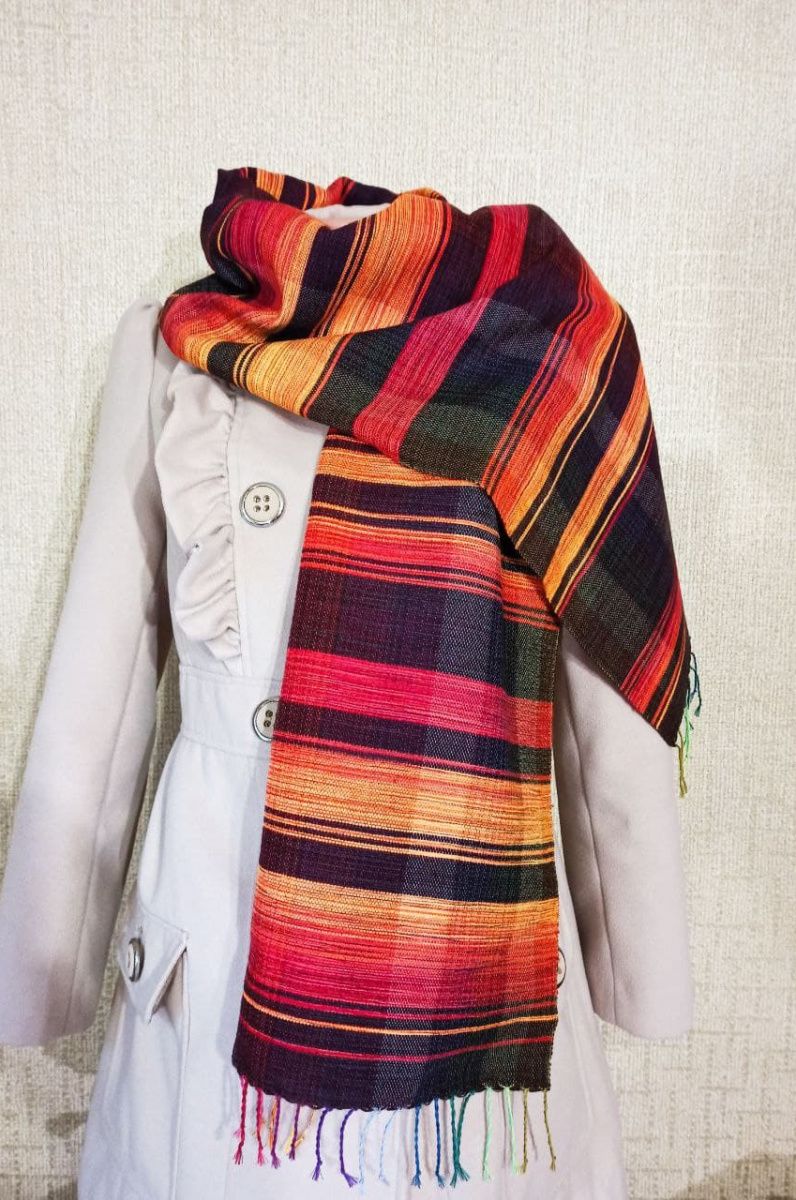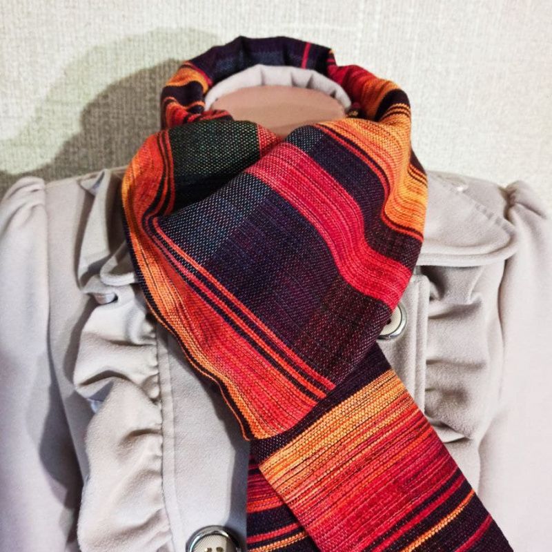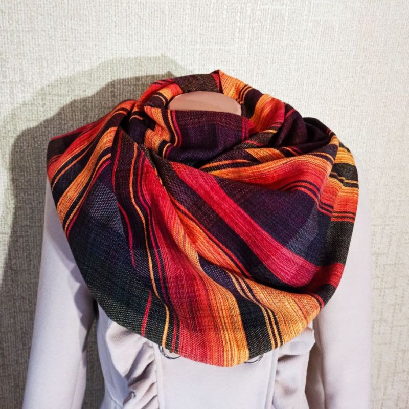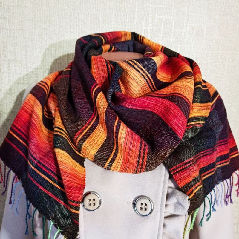 Отличный подарок для Вас и Вашей семьи! Мягкий и приятный на ощупь. Шарф изготовлен на ткацком станке из натуральных материалов. Полосатые оттенки красного и оранжевого на черном полотне, плавно перетекающие друг в друга, создавая градиент. Подчеркните свою индивидуальность и уникальность! Он согреет Вас в любое время года... Размер 175х33 см