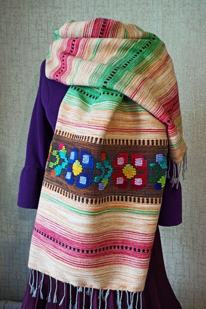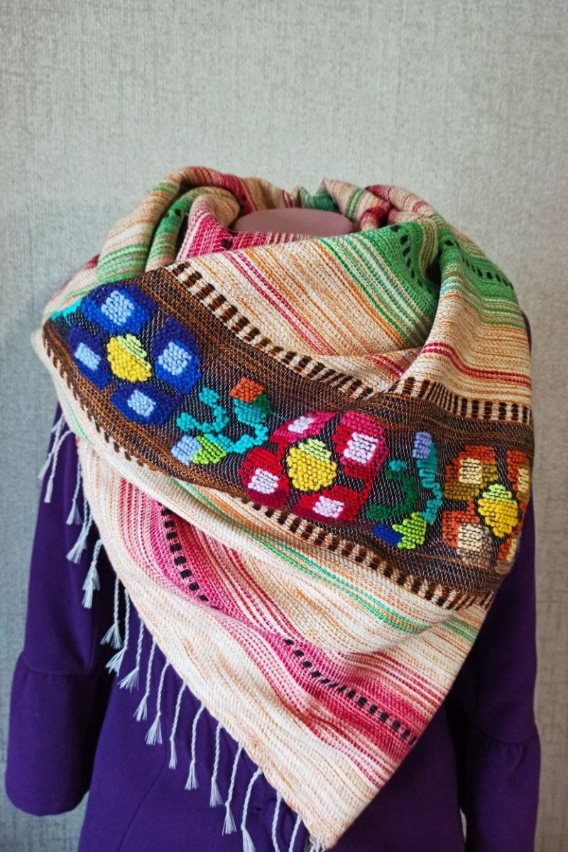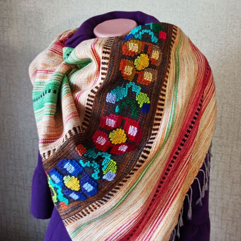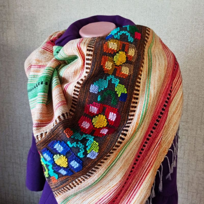 Прекрасный подарок для вас и вашей семьи! Шарф создан на ткацком станке из натуральных материалов - хлопка, шерсти и вискозы. Размер 161х62 см. Приятный и нежный на ощупь. Красивый широкий шарф украсит ваш образ и согреет в любое время года.