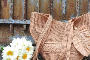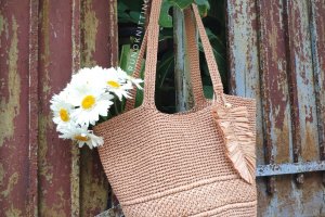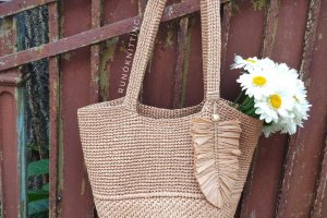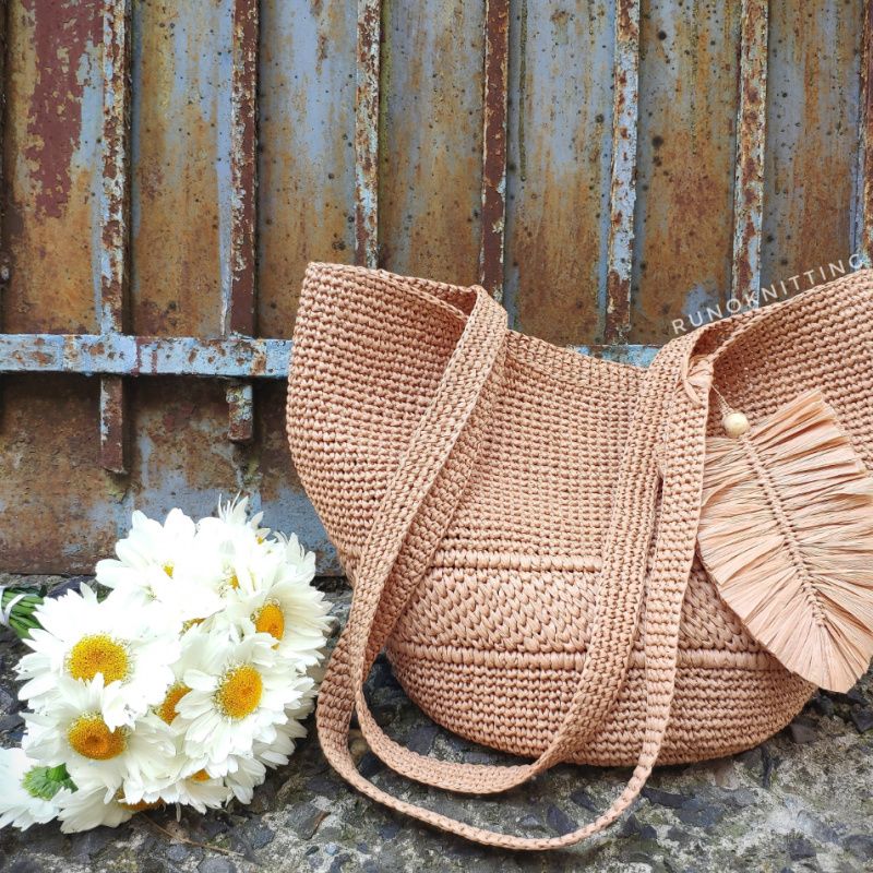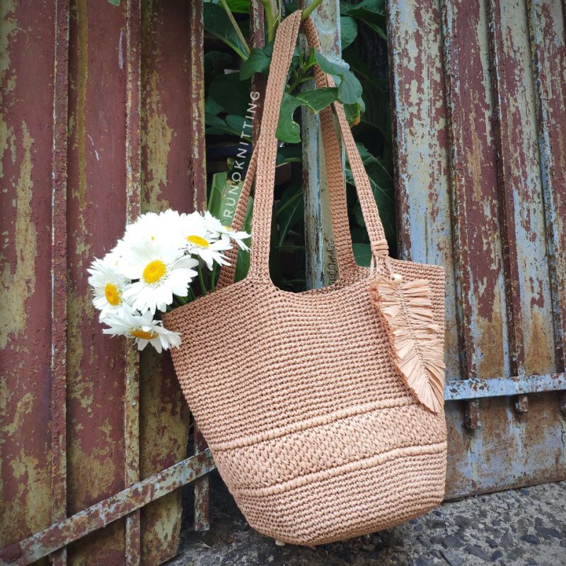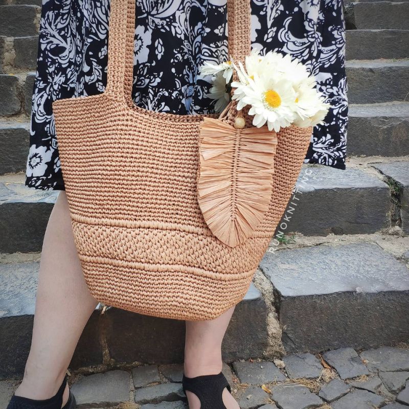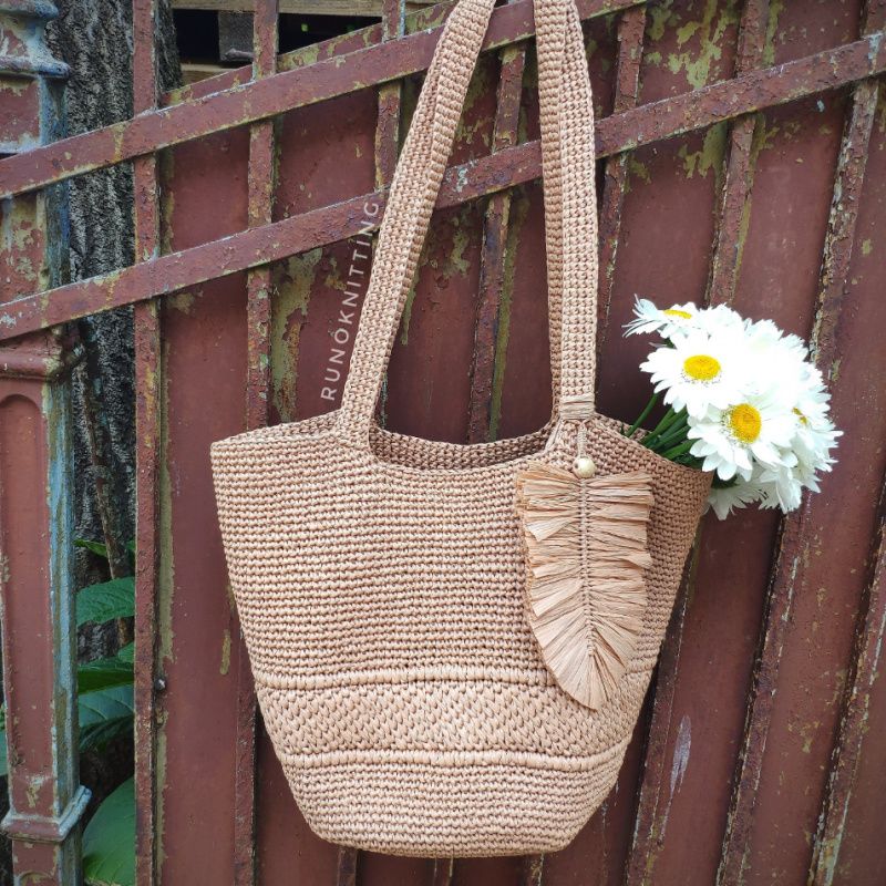Сумка - шопер, зв'язана гачком з рафії, колір grain.