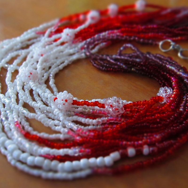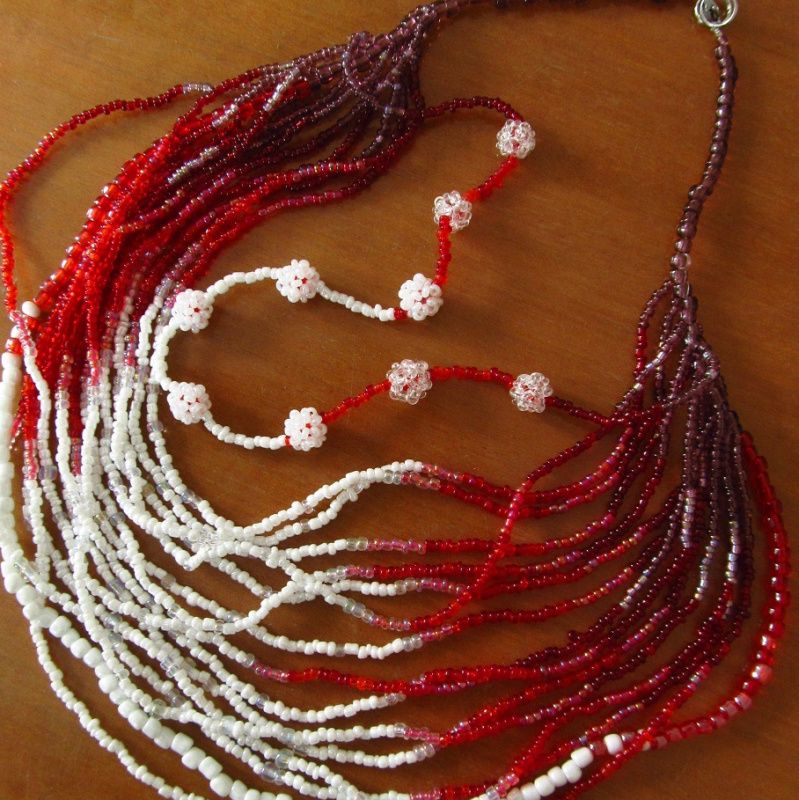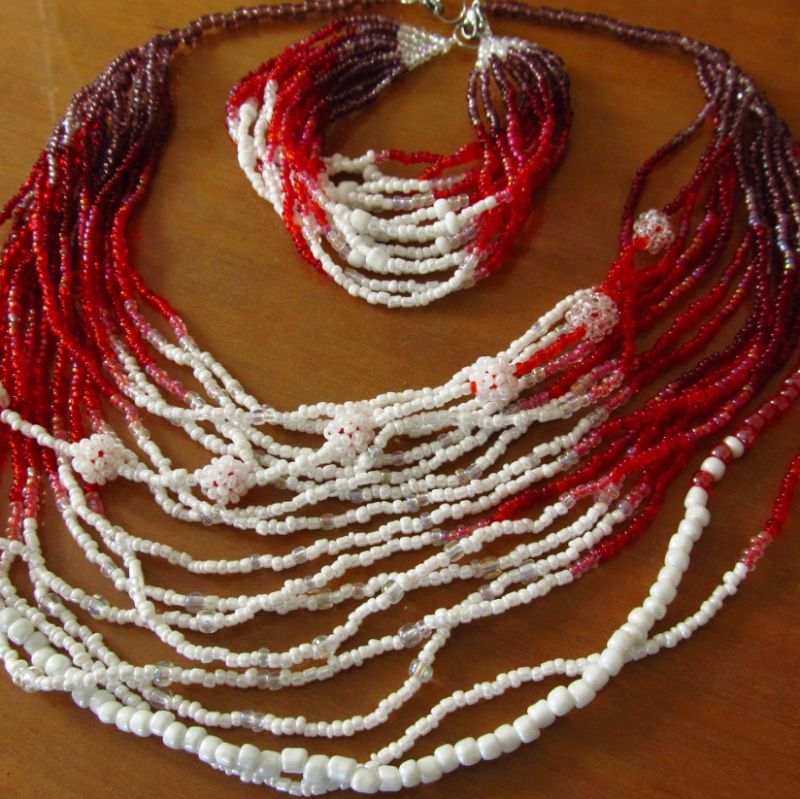 Бисер 10ти цветов, капроновая нить, застежки из нержавеющей стали. Размеры: ожерелье 41-57см, браслет 20см Цена договорная.