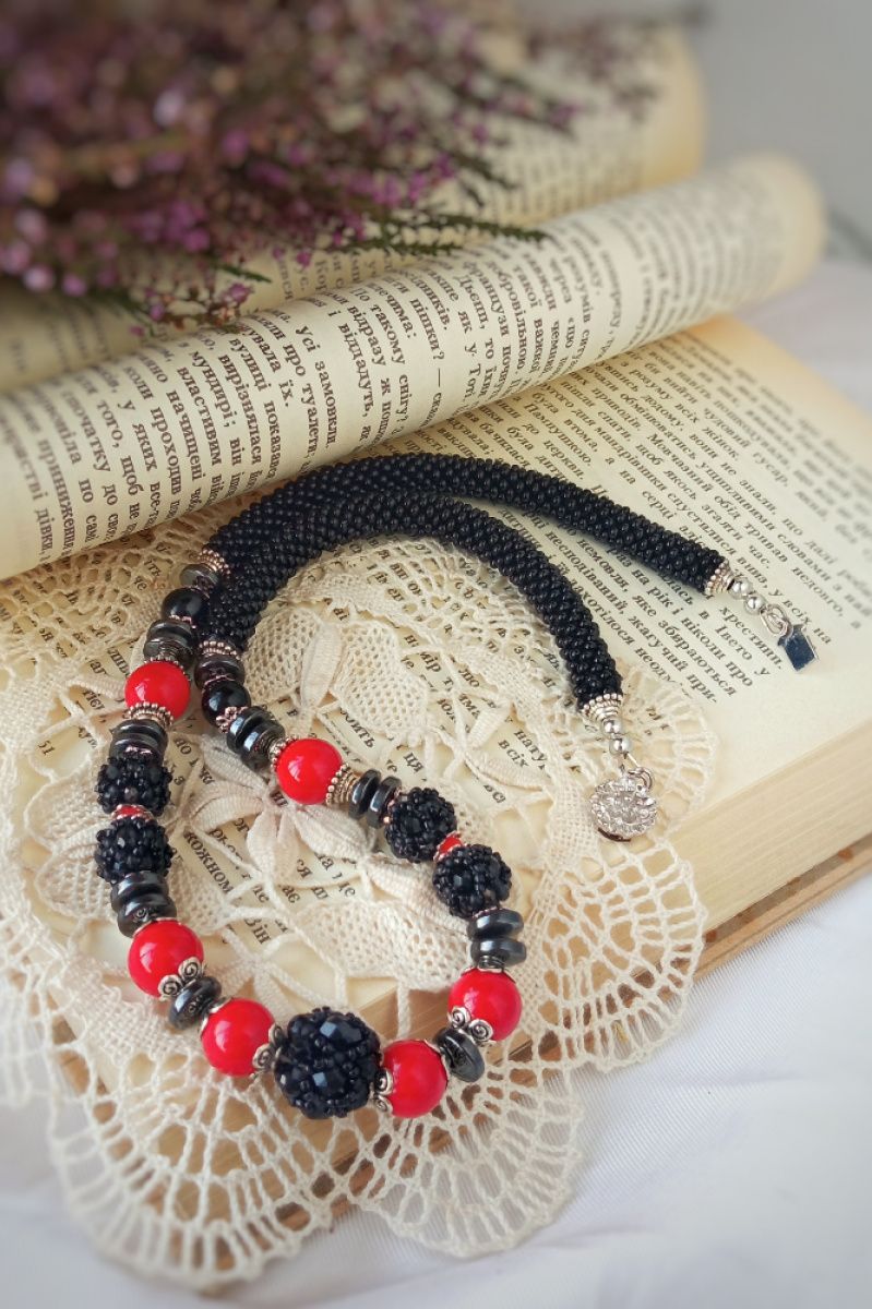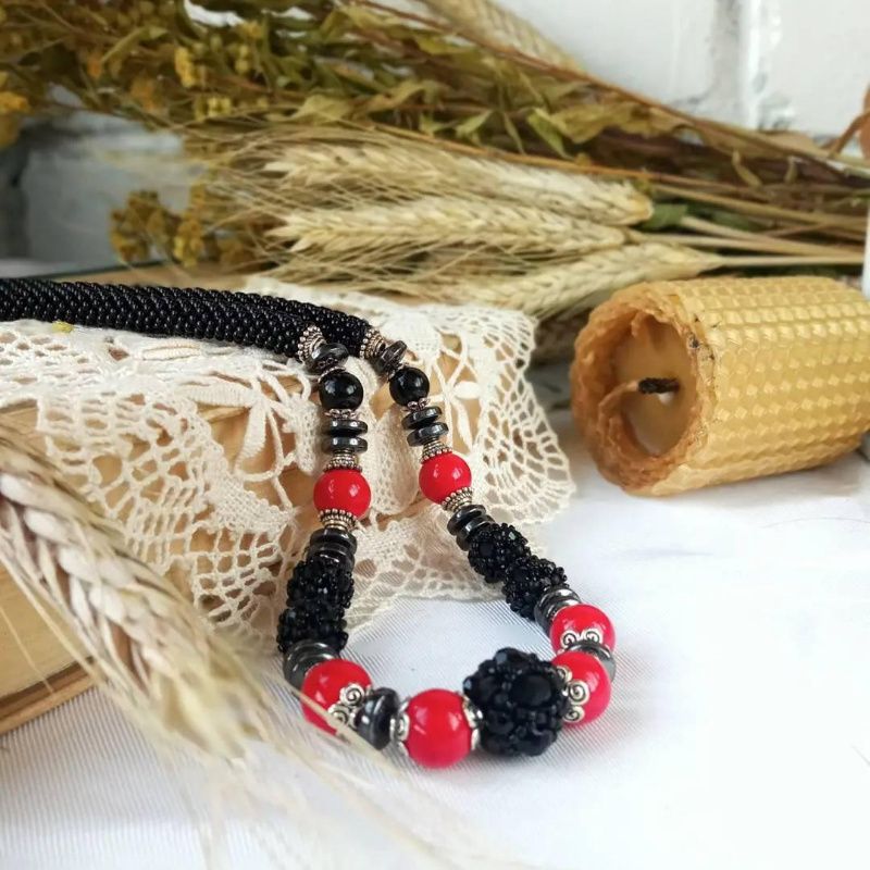 Главное - красная помада ... Неважно, что ты наденешь: вышиванку, платье с глубоким декольте, белую блузку .... Мое новое кольье + красная помада, и ты богиня !!!