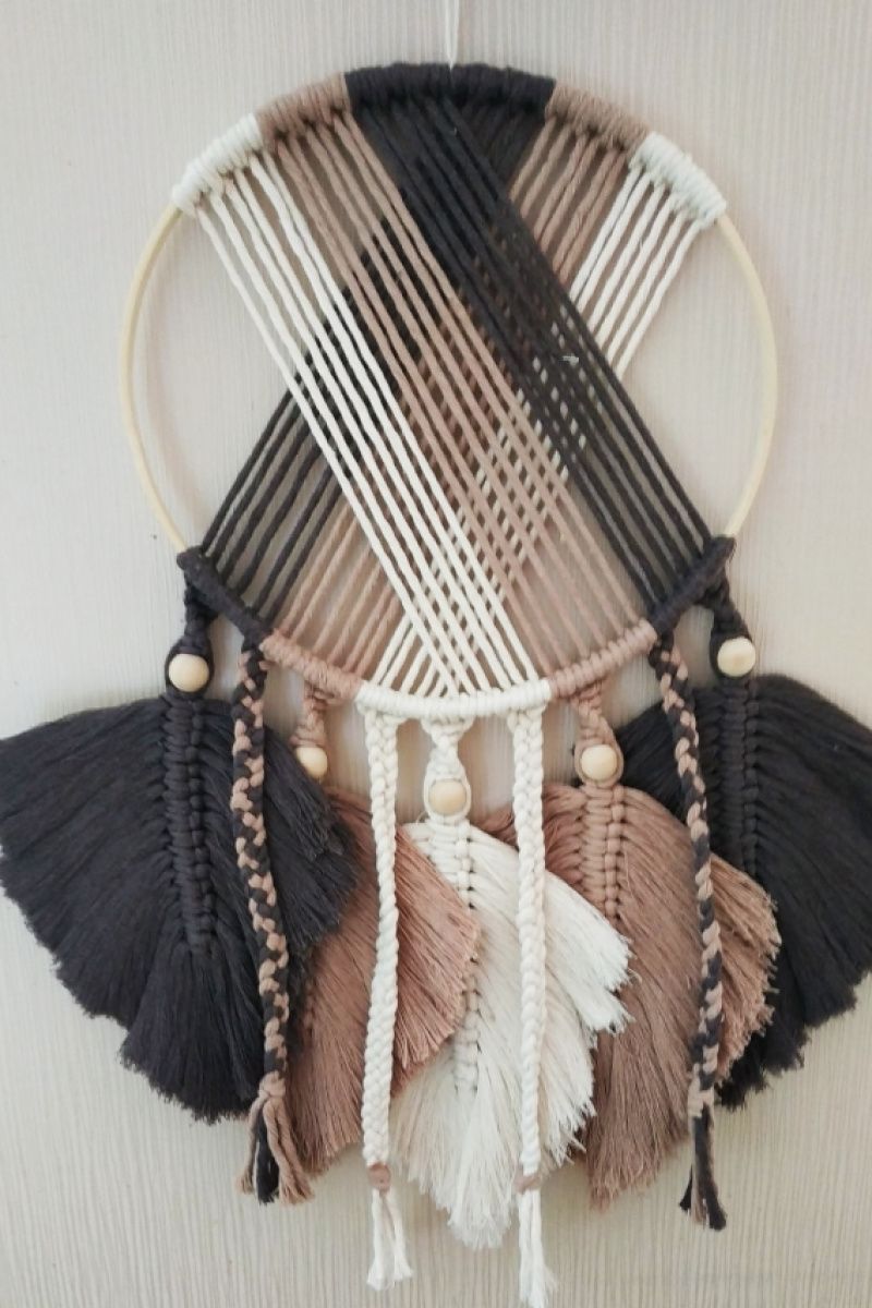 Ловец снов • Диаметр 27 см. ⠀ • Длина без петельки 55 см. ⠀ Материалы: бамбук основа, Хлопок шнур, деревянные бусины.
