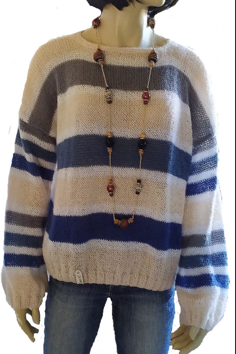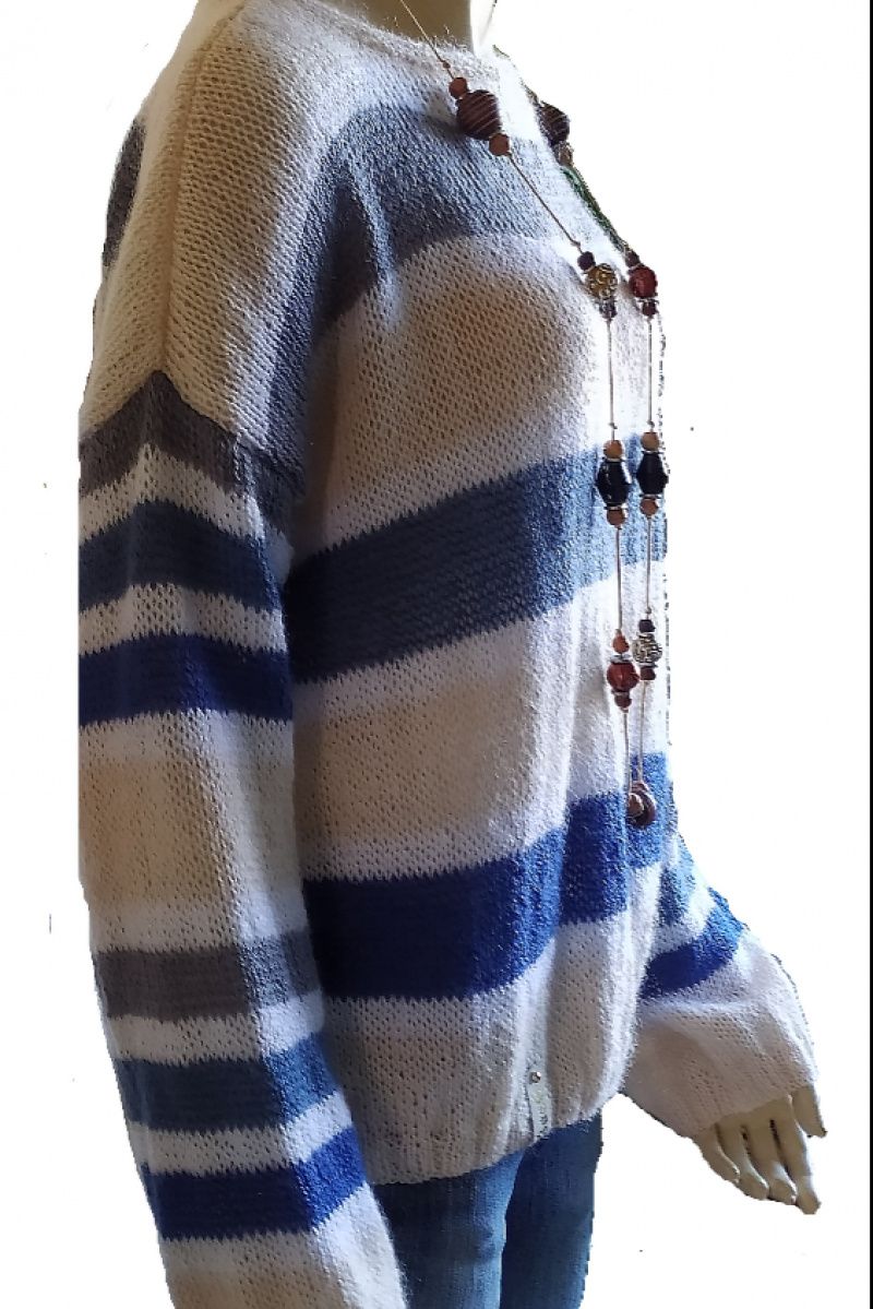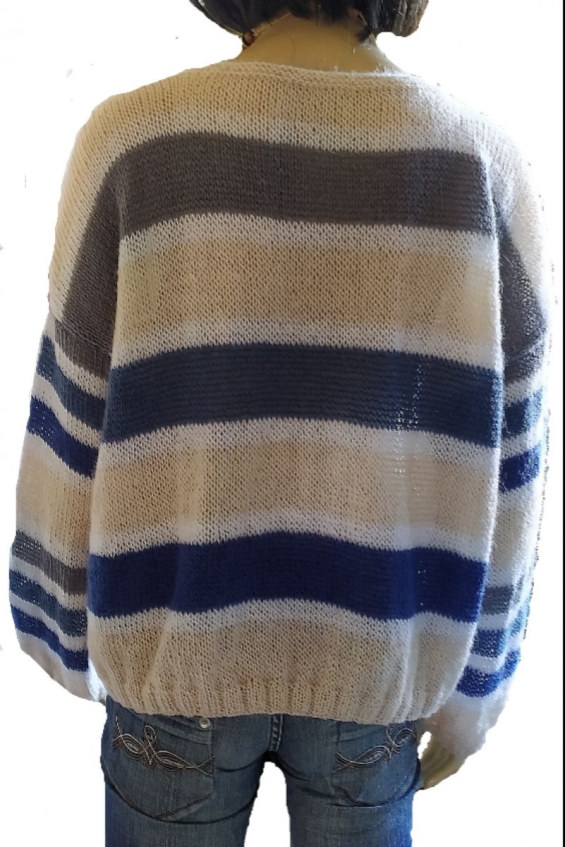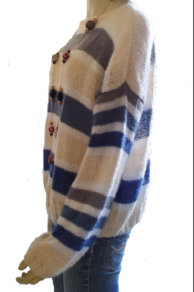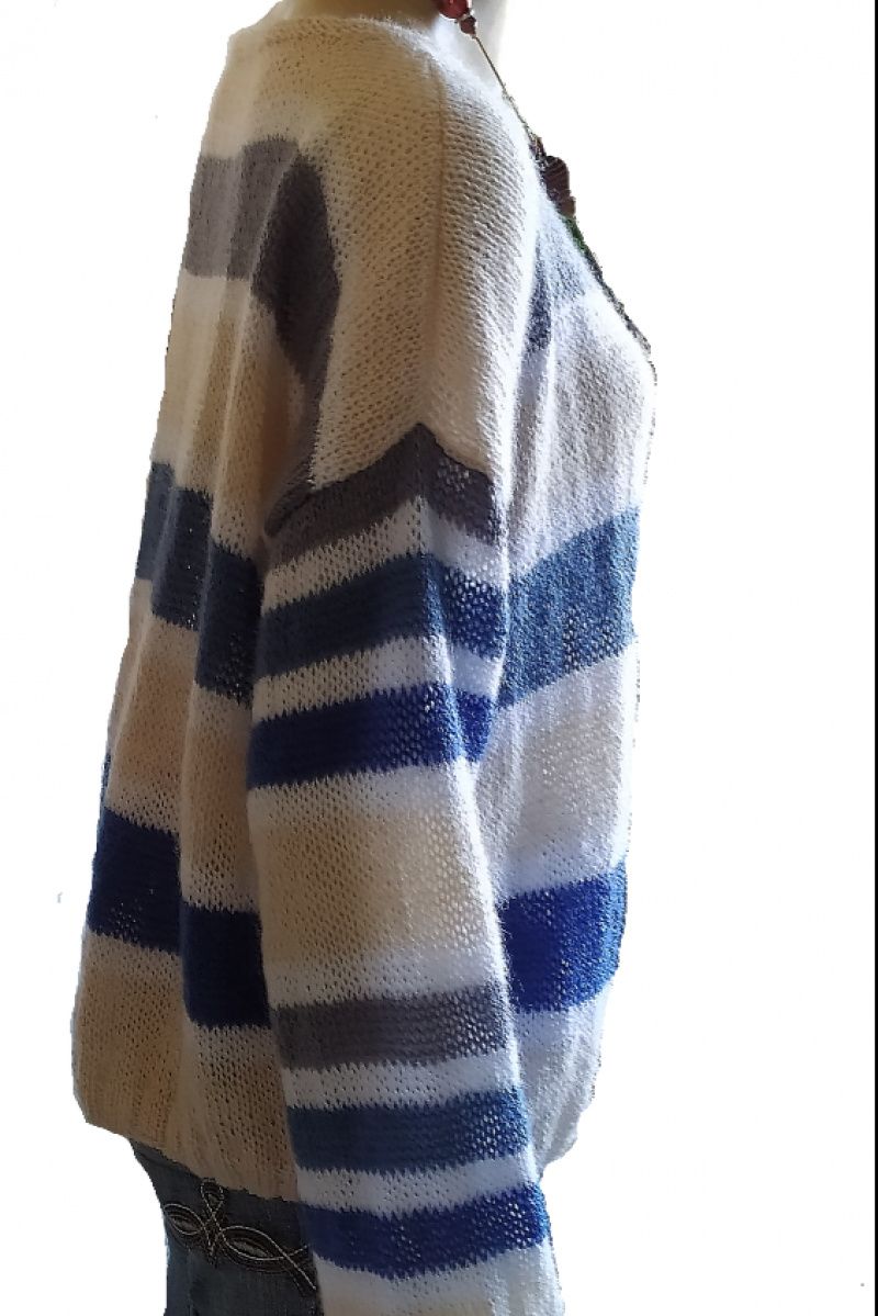 Женский свитер в полоску. Пушистый свитер. Свитер оверсайз. Уютный свитер ручной вязки. Свитер с объемными рукавами в пастельных тонах. Шерсть с добавлением ангоры 40%, акрил.