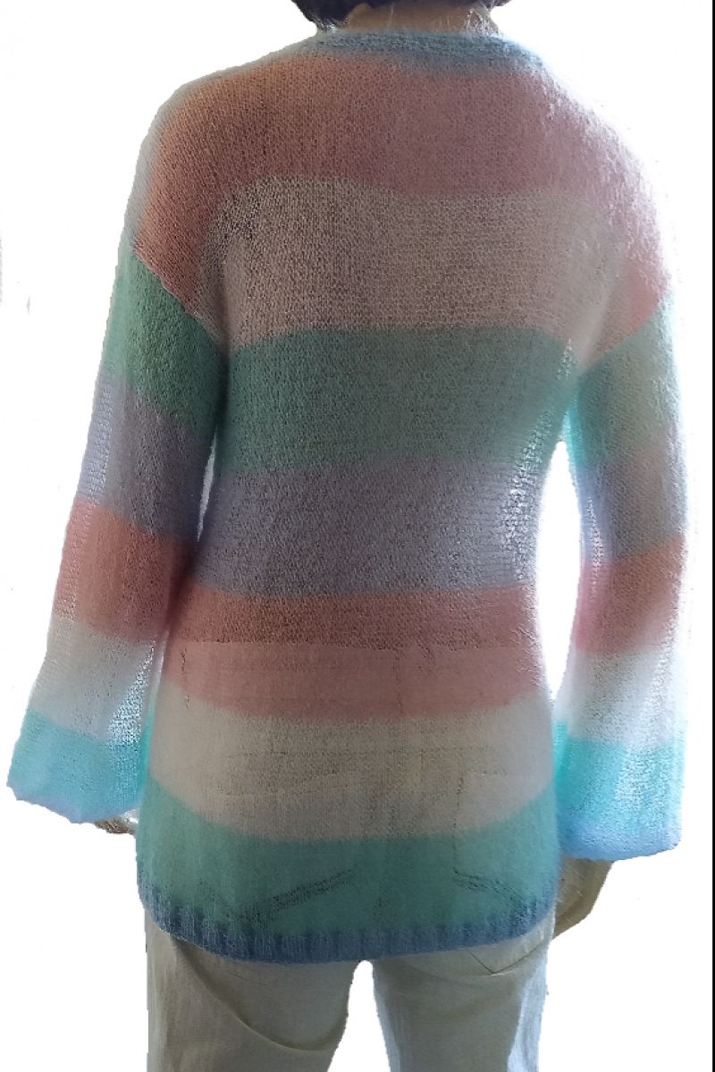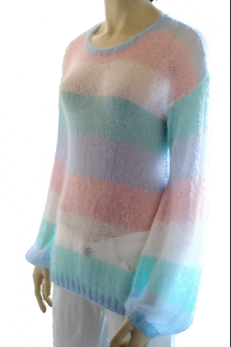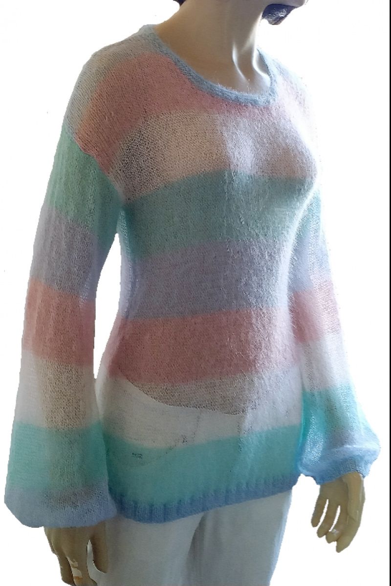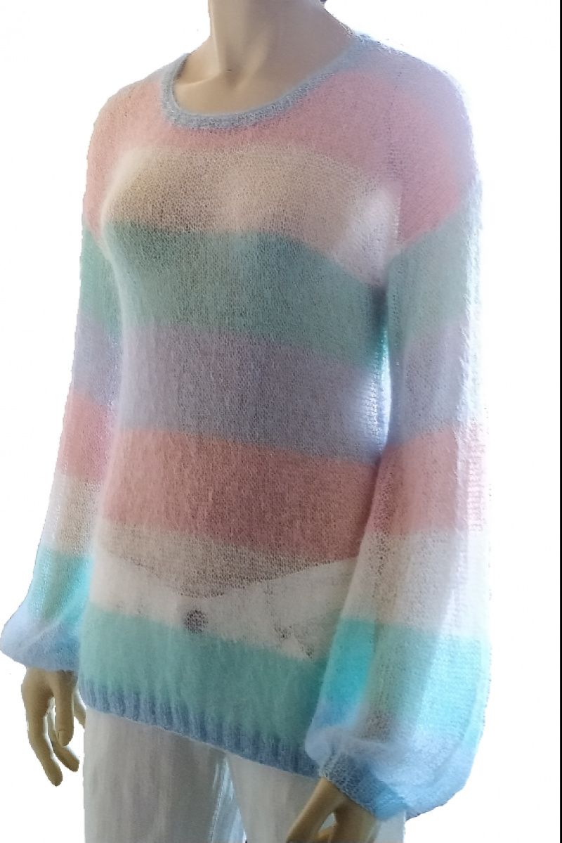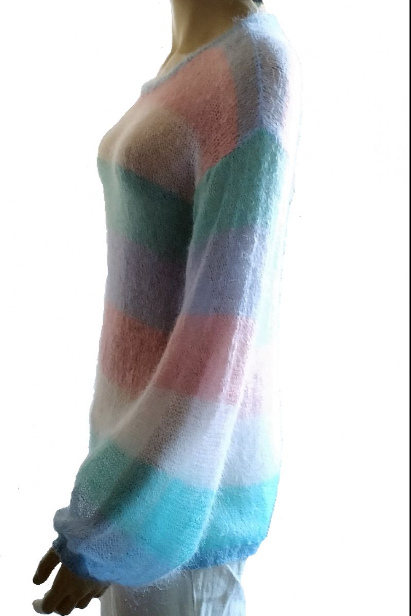 Свитера из разноцветного кидмохера. Пушистый свитер. Свитер в радужную полоску. Прозрачный свитер оверсайз с объемными рукавами