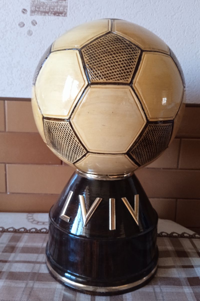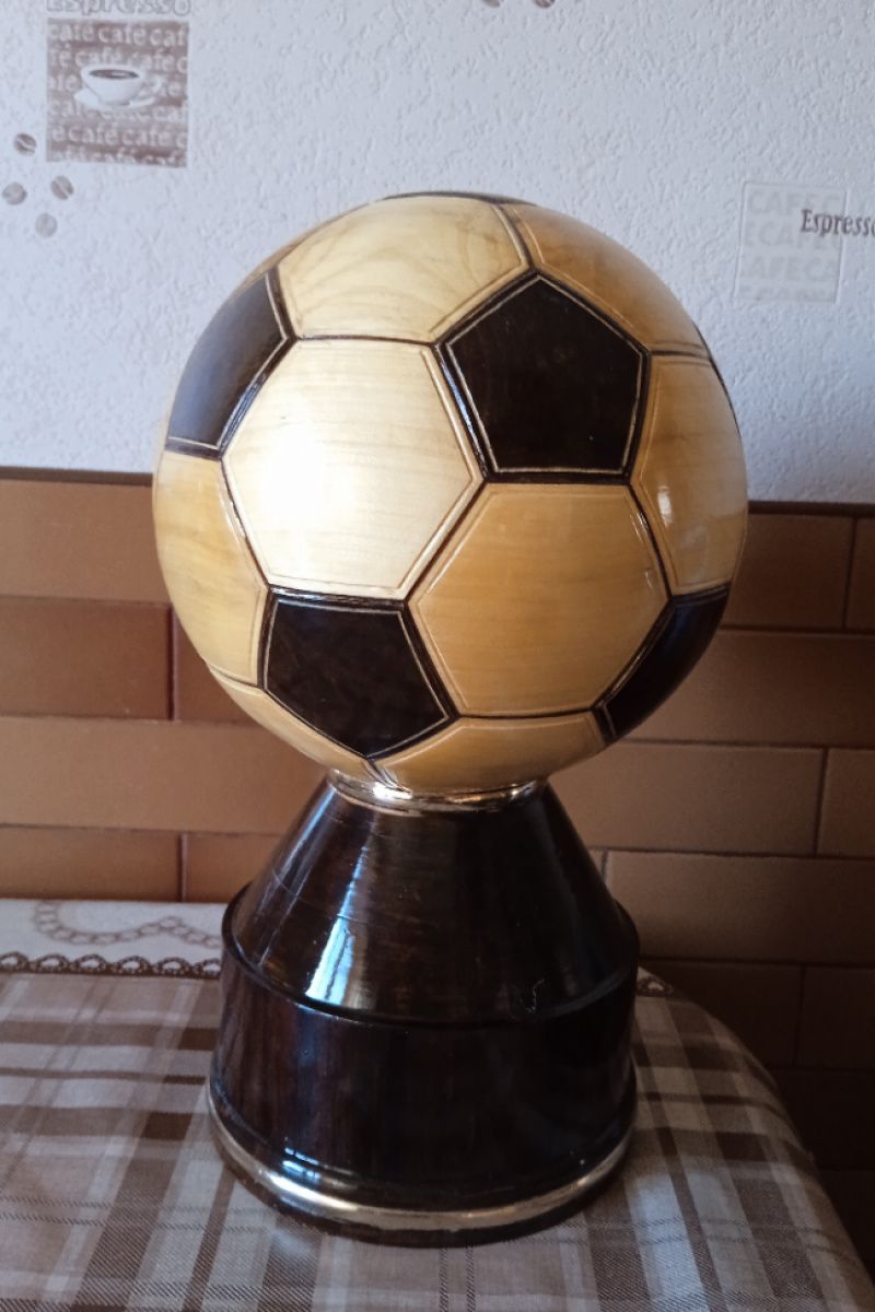 Деревянный футбольный мяч в масштабе 1:1. Красивый подарок для любителей футбола. Возможен логотип под заказ.