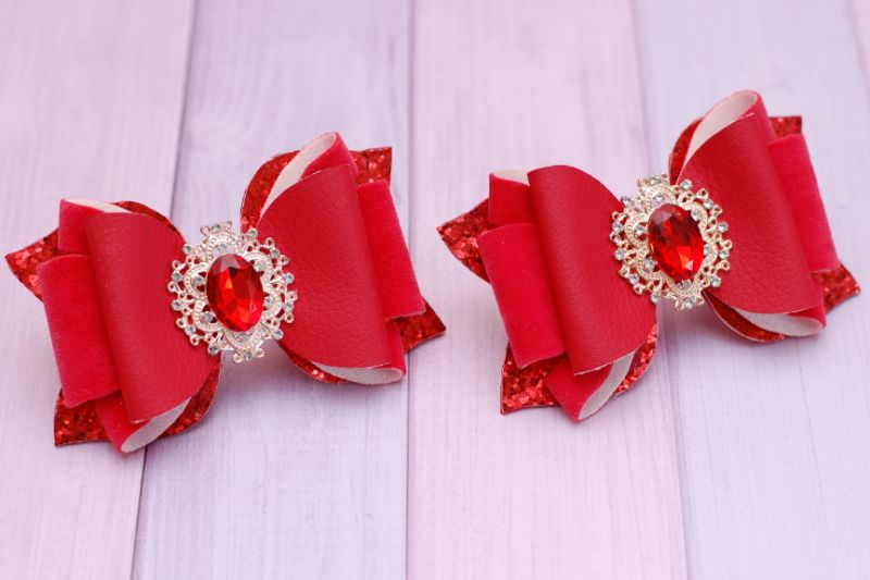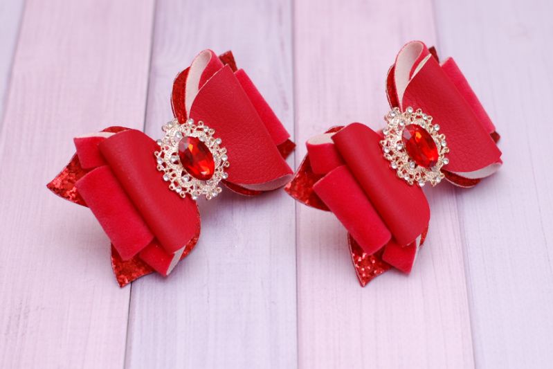 Модные бантики выполнены из разных видов экокожи и бархата.
