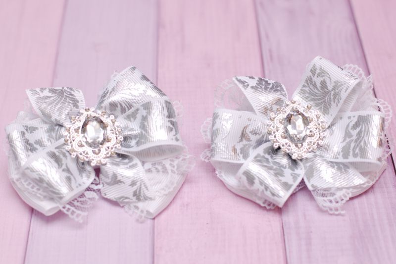 Красивые школьные банты подойдут под любую форму. Бантики выполнены из качественных репсовых лент, дополнены декоративой лентой с красивым серебристым узором и кружевом. Декорированы красивой ювелирной серединкой. Хорошо держат форму, не мнутся. Основа – резинки. Размеры бантика 9,5*8 см.