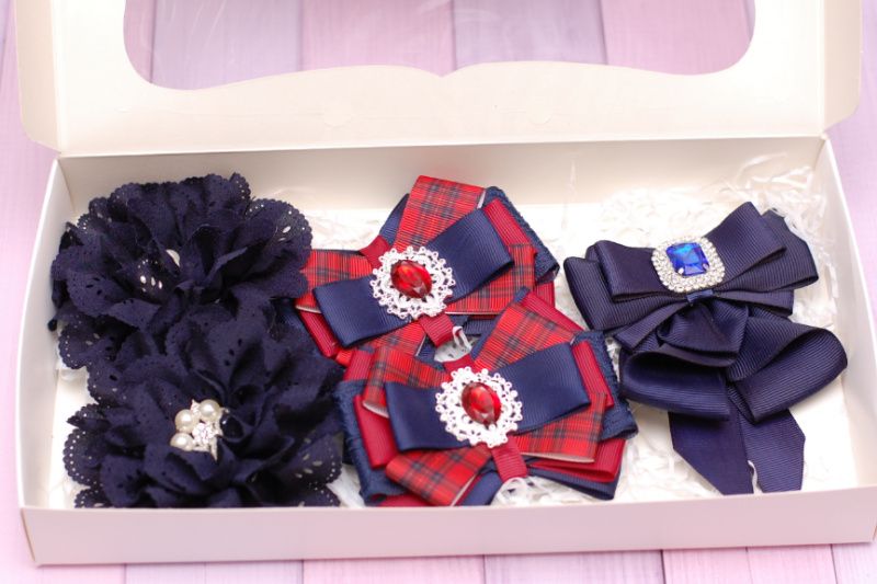 2 - резинки с бантами из репсовых лент размером 10*8,5 см.