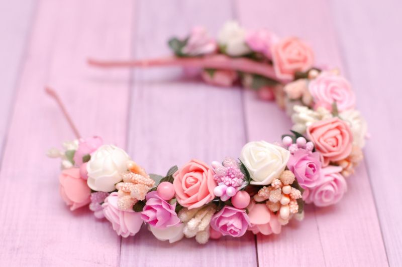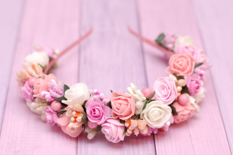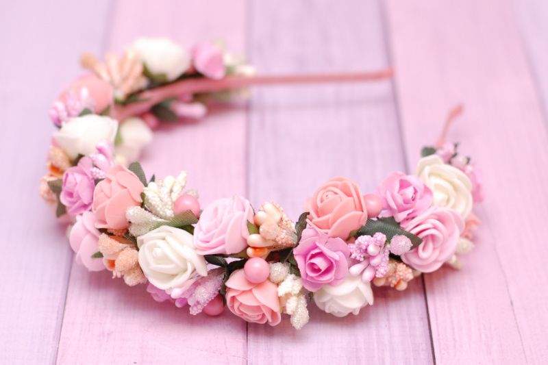 Ободок выполнен на металлической основе в кремово-персиково-розовых тонах. Очень нежный, подойдет под любой наряд. Дополнит образ как для фотосессии, торжества, так и для повседневной носки.