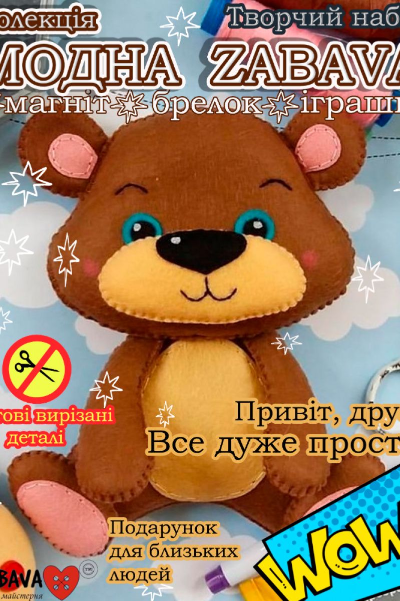 Игрушки из фетра под силу сделать даже умельцам без большого опыта, с нашими наборами, создать игрушку своими руками очень просто, все детали содержатся в наборе уже вырезаны, а маленькие детальки имеют клейкую основу, что очень удобно и практично. В наборе есть кольцо для брелока, а так же неодимовый магнит, что делает нашу игрушку универсальной. .... Однажды мама сшила для дочери темно-коричневого плюшевого мишку. Очки - голубенькие пуговицы. Связав мишке на шею красный бантик, мама положила медведя на подушку к дочери, подоткнула съехались одеяло и тихонько вышла из комнаты, осторожно закрыв за собой дверь, чтобы не разбудить, ....
