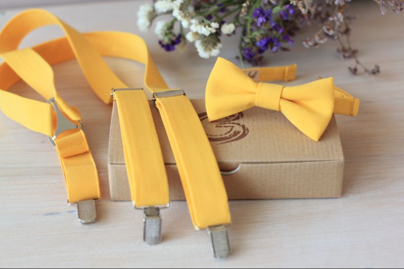 Стильный набор аксессуаров -текстильные подтяжки и бабочка ручной работы с качественной металлической фурнитурой для подтяжек- зажимами с пластиковыми вставками для хорошей фиксации на поясе и специальными пряжками-крокодилами для регулировки длины и резинкой сзади,