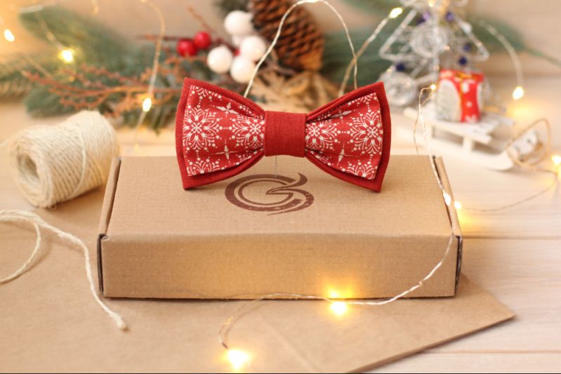Бабочки из ярких тканей с новогодней тематикой сделают Ваш образ по-настоящему праздничным и незабываемым