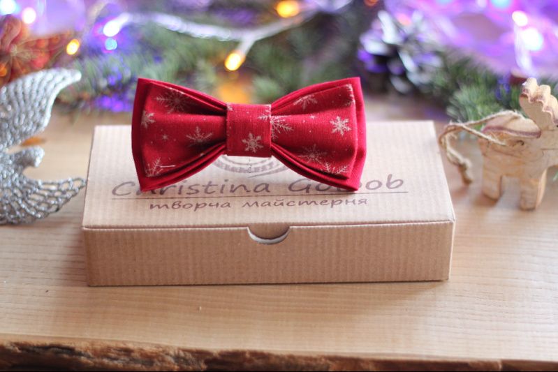 Бабочки из ярких тканей с новогодней тематикой сделают Ваш образ по-настоящему праздничным и незабываемым