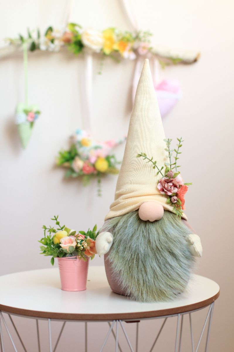 Такой гном сможет прийти на смену зимним персонажам, украсит дом и добавит в атмосферу нотки весенней свежести и предвкушение теплых солнечных дней