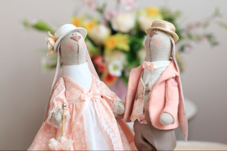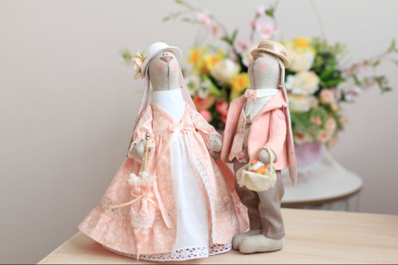 Поэтому, перед тем , как заказывать какую- либо вещь ручной работы, будьте готовы к тому, что она может отличаться от картинки. Цветовое решение и понравившийся образ будут сохранены, но пара будет другая – именно ваша, со своим характером и особенностями (даже в том случае, когда ткани будут использованы те же, что и для создания Зайчиков на фото)
