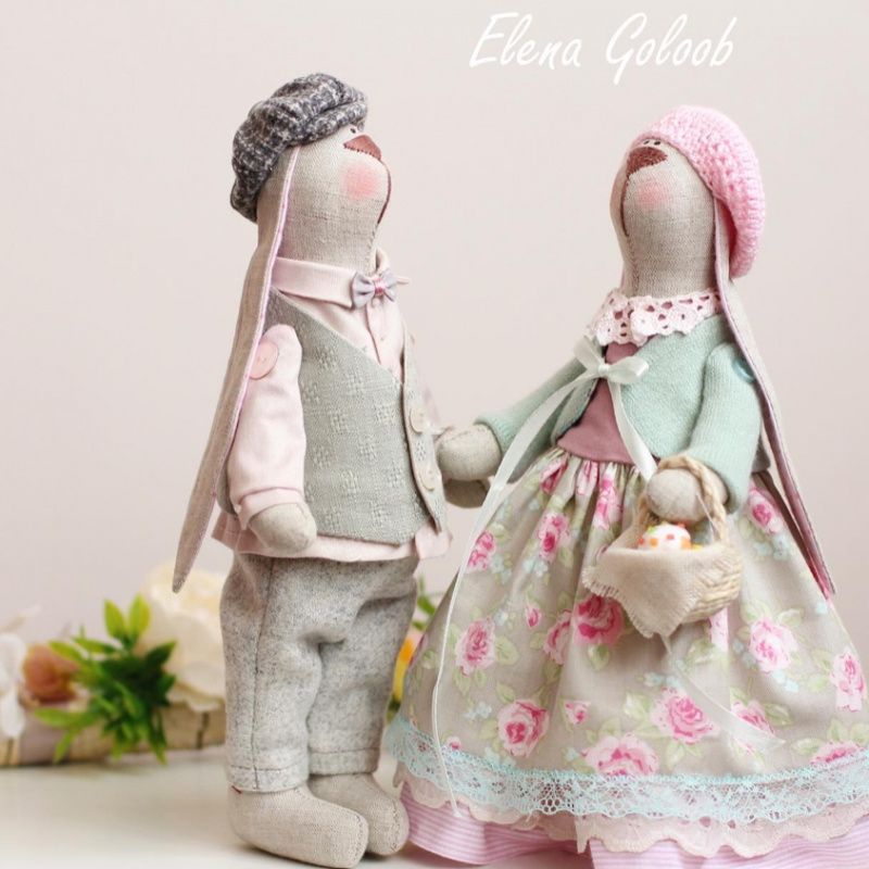 Поэтому, перед тем , как заказывать какую- либо вещь ручной работы, будьте готовы к тому, что она может отличаться от картинки. Цветовое решение и понравившийся образ будут сохранены, но пара будет другая – именно ваша, со своим характером и особенностями (даже в том случае, когда ткани будут использованы те же, что и для создания Зайчиков на фото)